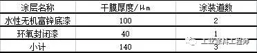 沪苏通长江公铁大桥(工程名:沪通长江大桥)构建外表面采用了环氧富锌配套涂层的方案,其配套体系如表5所示。
