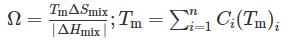 轻质高熵合金的设计依托于高熵合金现有的指导原则。高熵合金特有的“高熵效应”和“迟散扩散效应”,使得多主元高熵合金具有不形成多种复杂相,反而形成简单固溶体相的趋势。影响固溶体相形成的经验参数是基于热力学和Hume-Rothery准则提出的, 主要包括混合焓( ΔH mix)、混合熵(ΔS mix)、热力学参数 Ω、原子半径差(δ)、电负性差(Δχ)及价电子浓度( VEC) 等[15-17]。 ZHANG等[15] 提出了ΔH mix-δ 准则,即当-15kJ·mol-1 <ΔH mix ≤ 5kJ·mol-1;12J·k-1mol-1<ΔS mix≤17.5J·k-1mol-1; δ<6.5%时,高熵合金体系倾向于形成固溶体相。对于ΔH mix-δ 准测,虽然考虑了原子错配度对固溶体应变能的影响以及ΔH mix 对固溶体热力学稳定性的影响,但忽略了ΔS mix 对固溶体热力学稳定性的影响。为了更加准确预测高熵合金相的形成,YANG等[16]提出了一个新的参数 Ω,如式(2)所示: