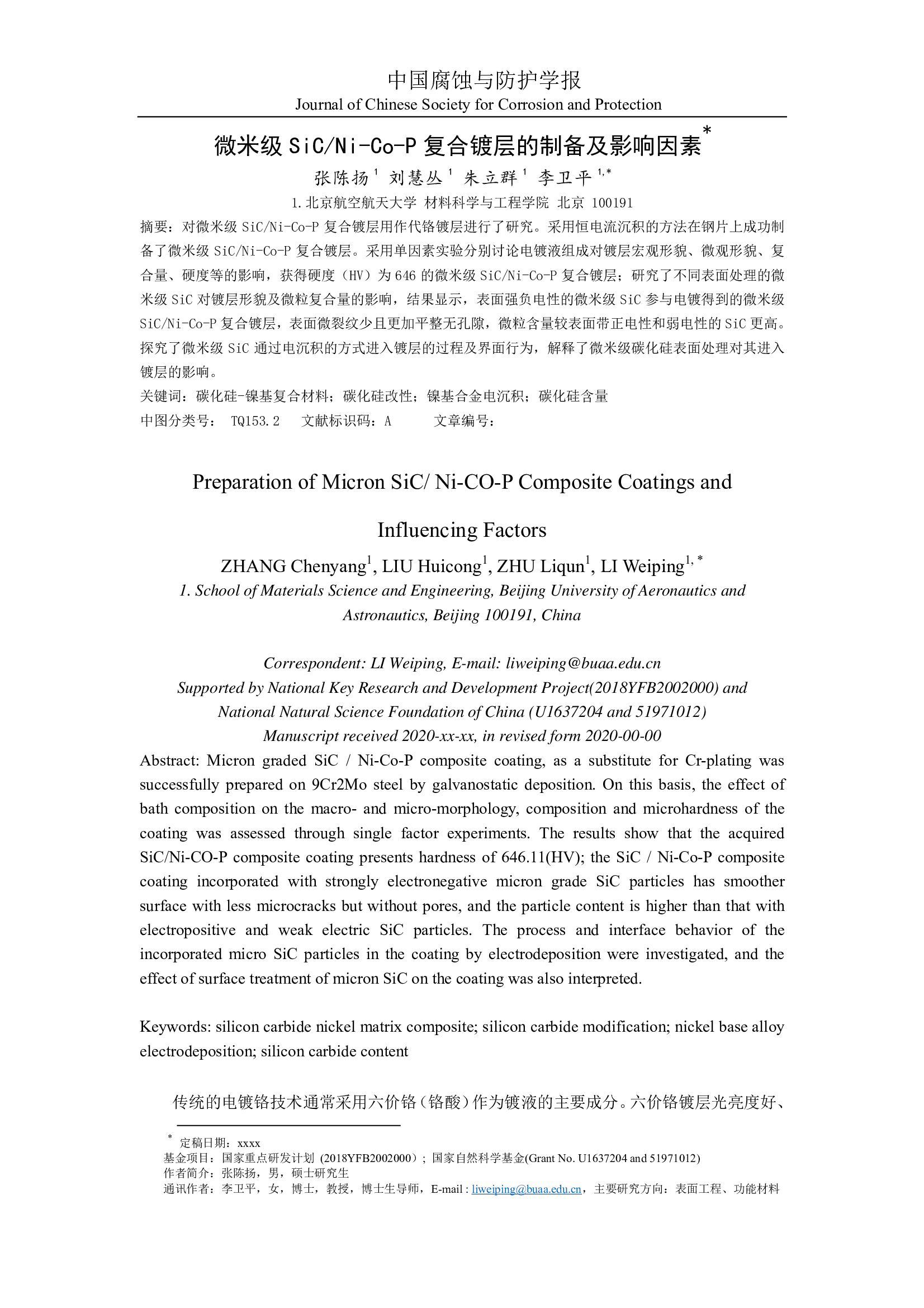 标签: 碳化硅-镍基复合材料, 碳化硅改性, 镍基合金电沉积, 碳化硅含量