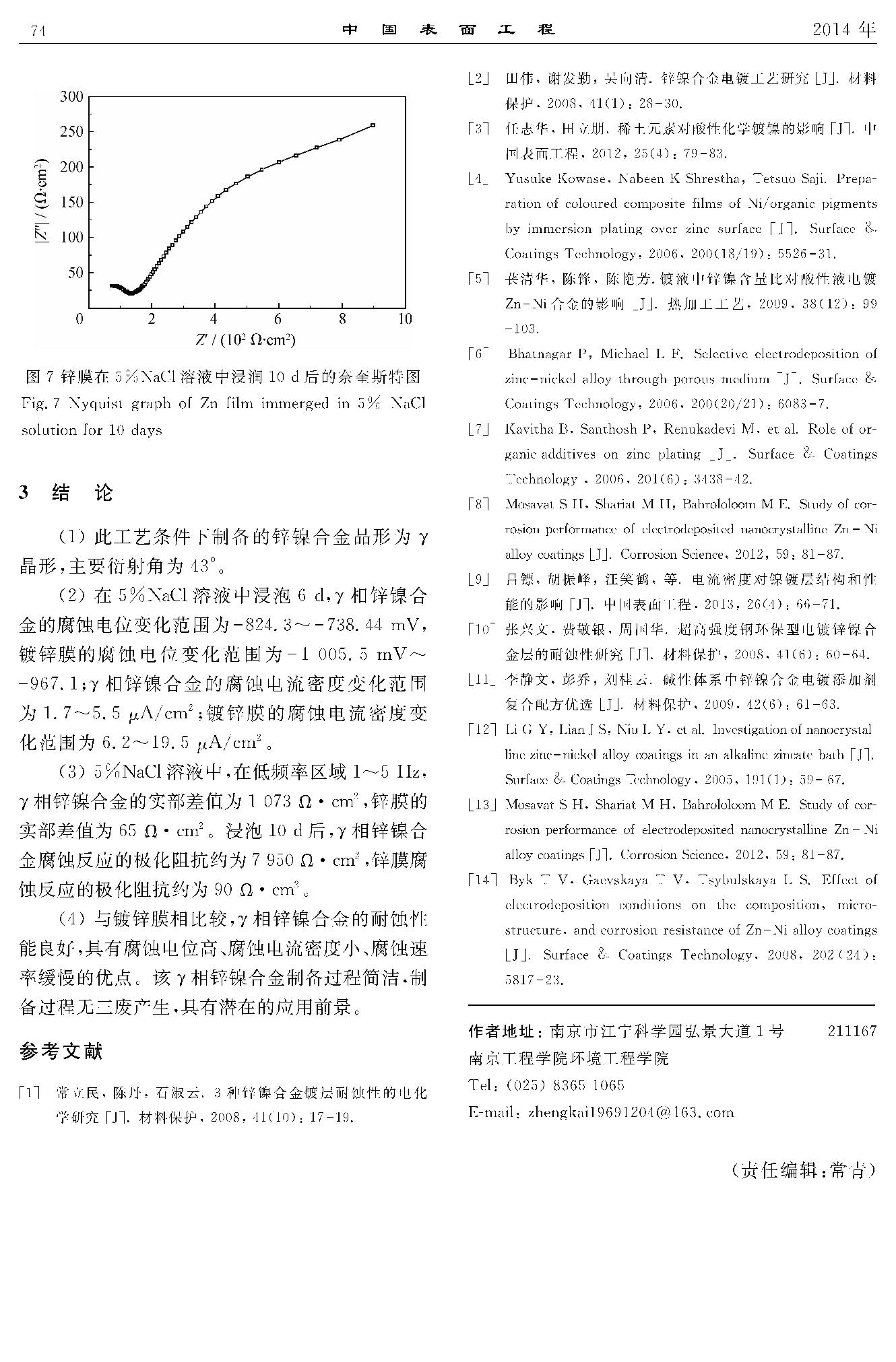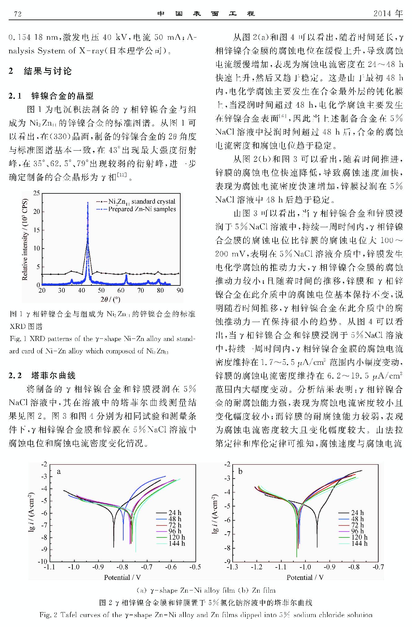 γ相锌镍合金膜与锌膜的耐腐蚀性能比较