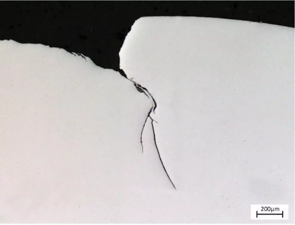 图7 新螺栓横截面试样的折叠缺陷(抛光态)