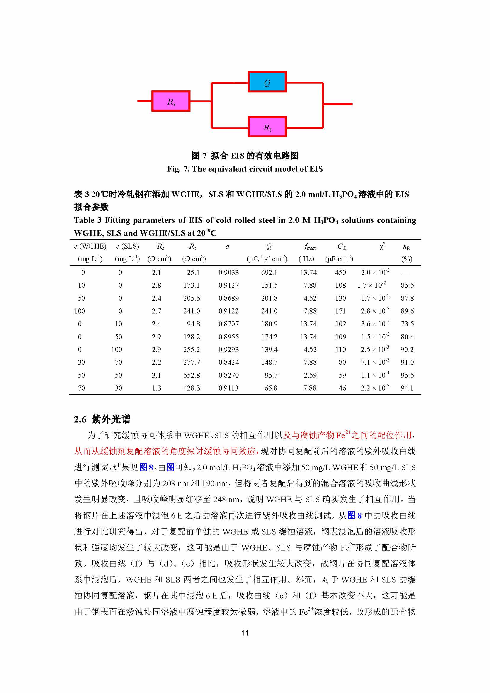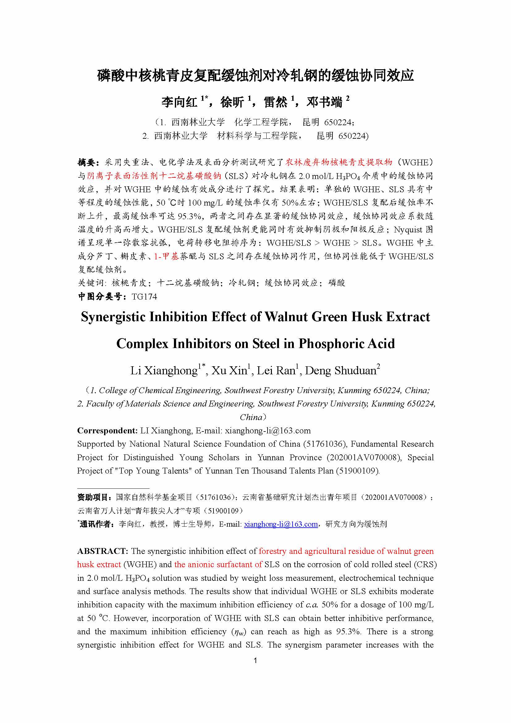 磷酸中核桃青皮复配缓蚀剂对冷轧钢的缓蚀协同效应