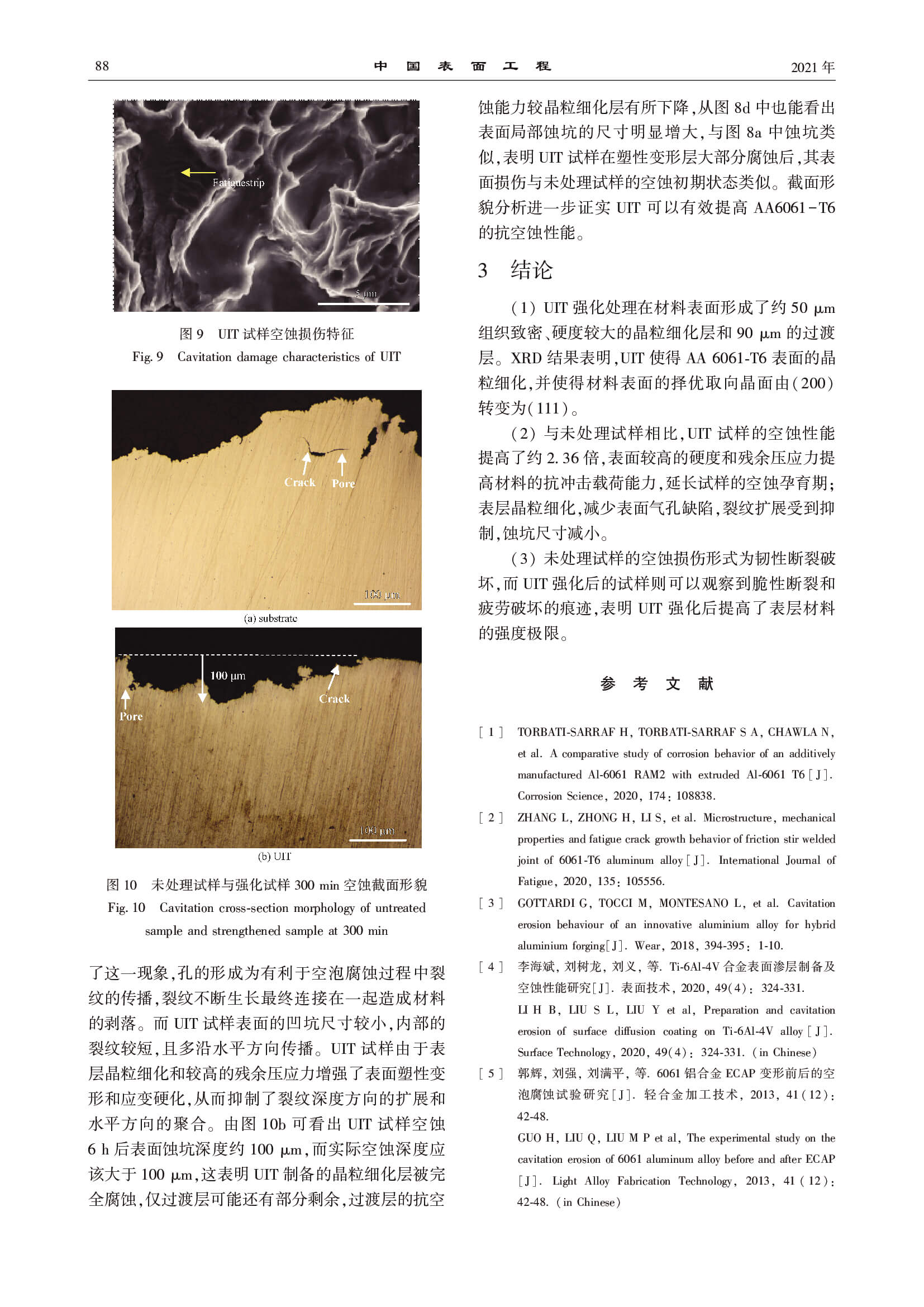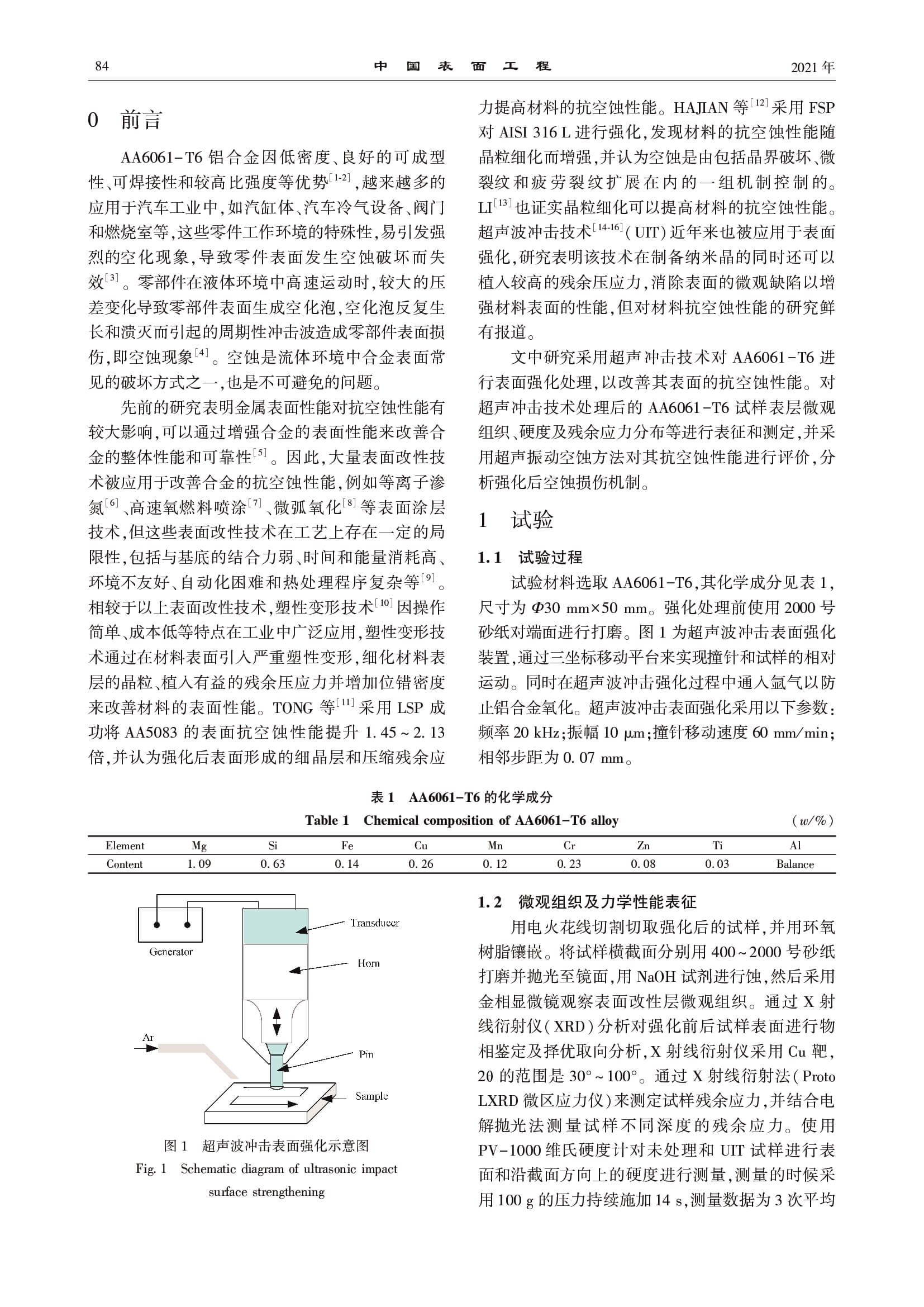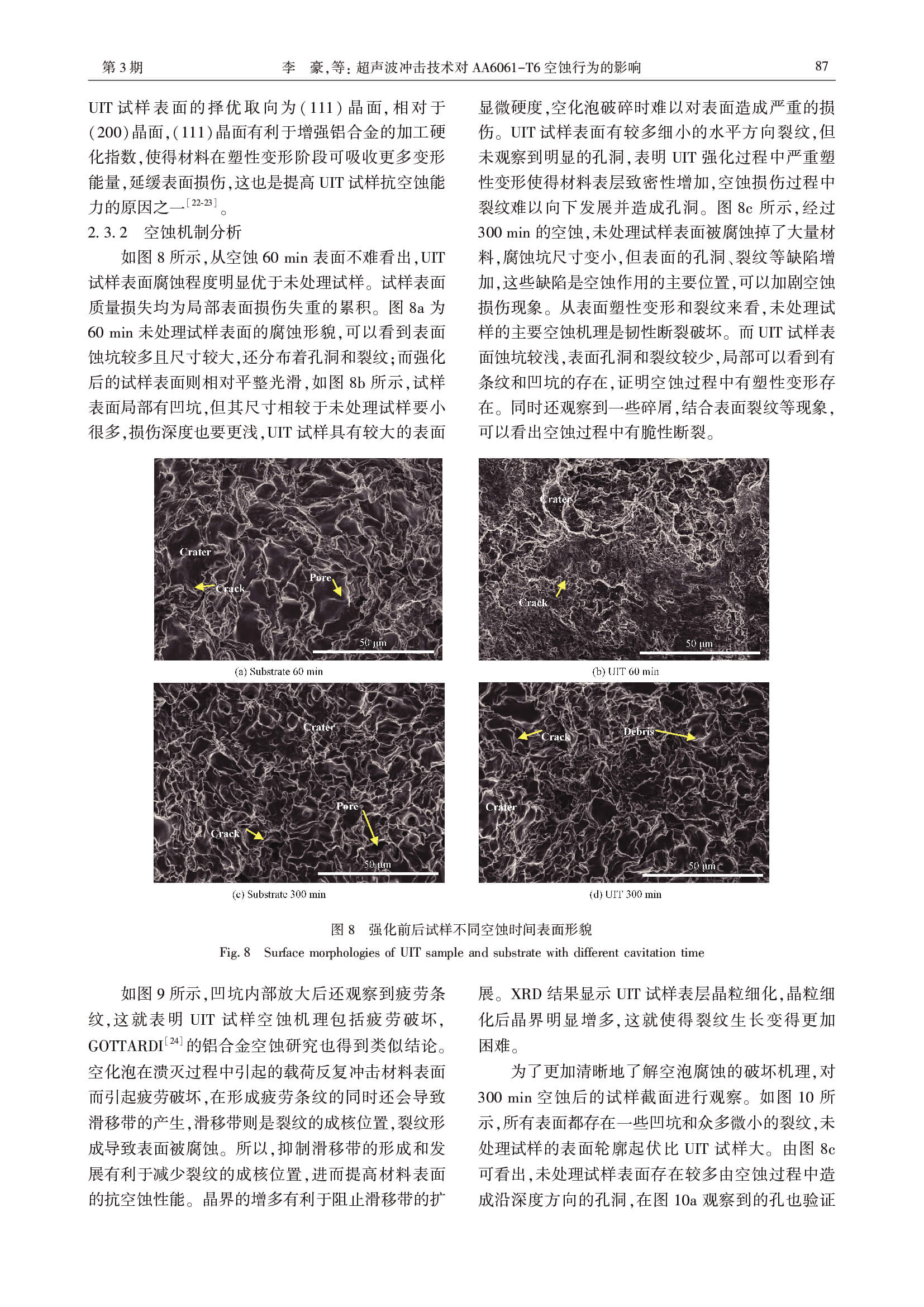 超声波冲击技术对 AA6061-T6 空蚀行为的影响
