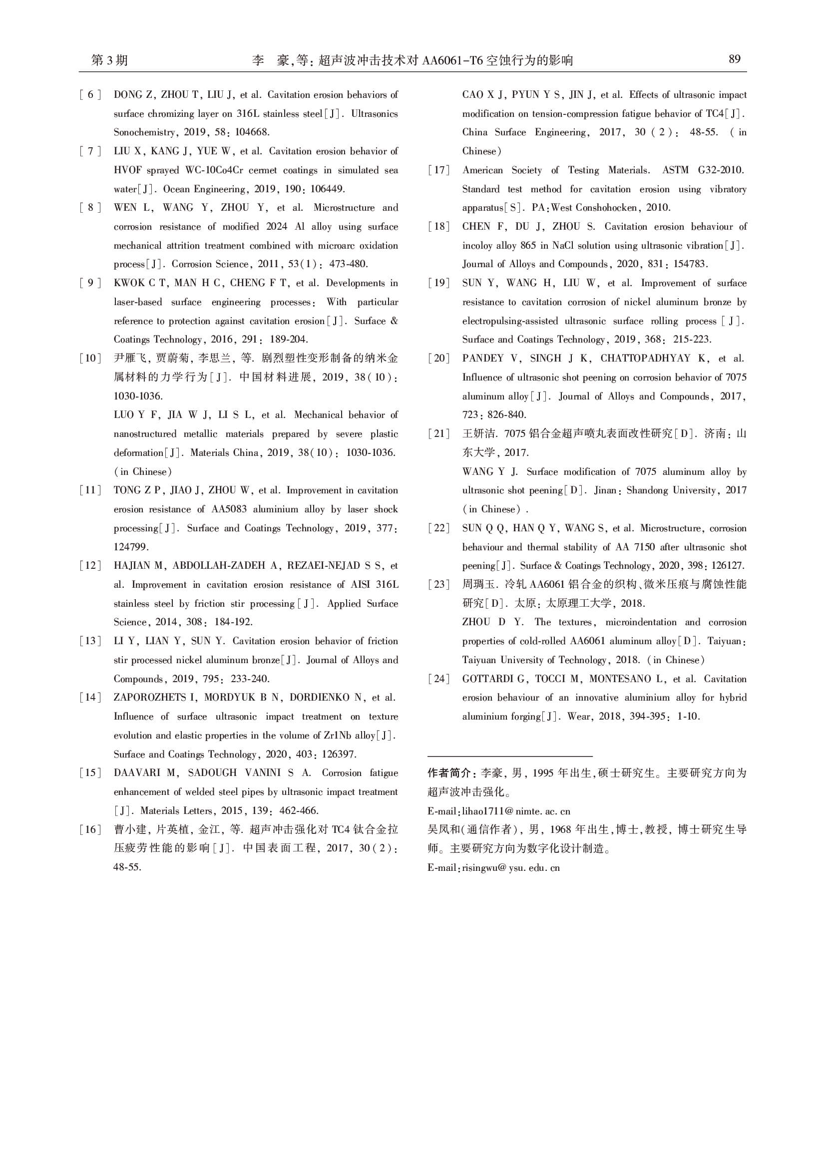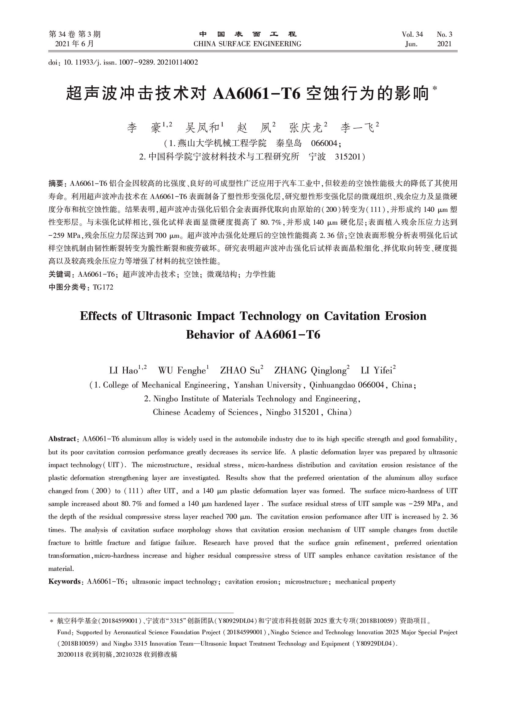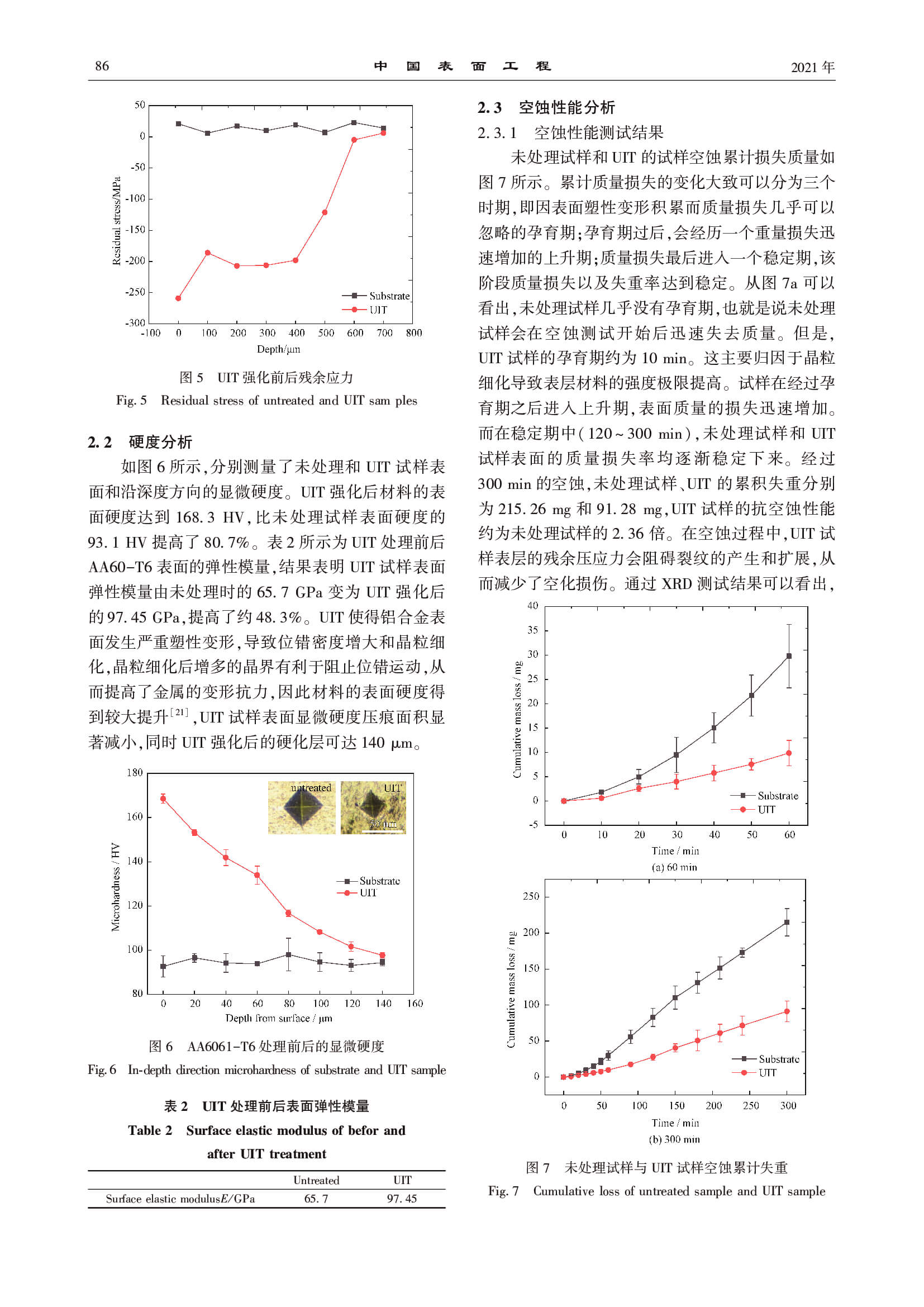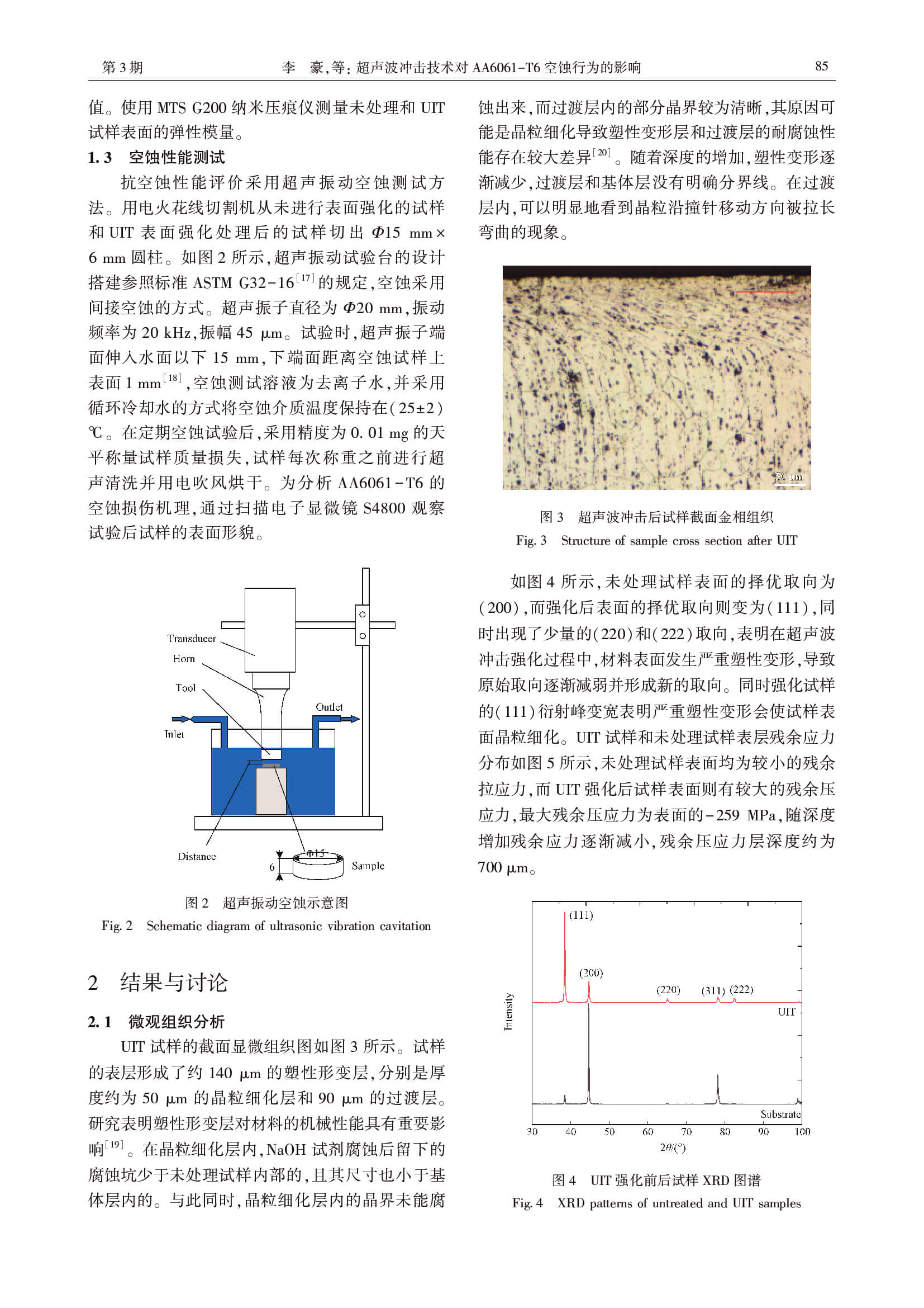 超声波冲击技术对 AA6061-T6 空蚀行为的影响