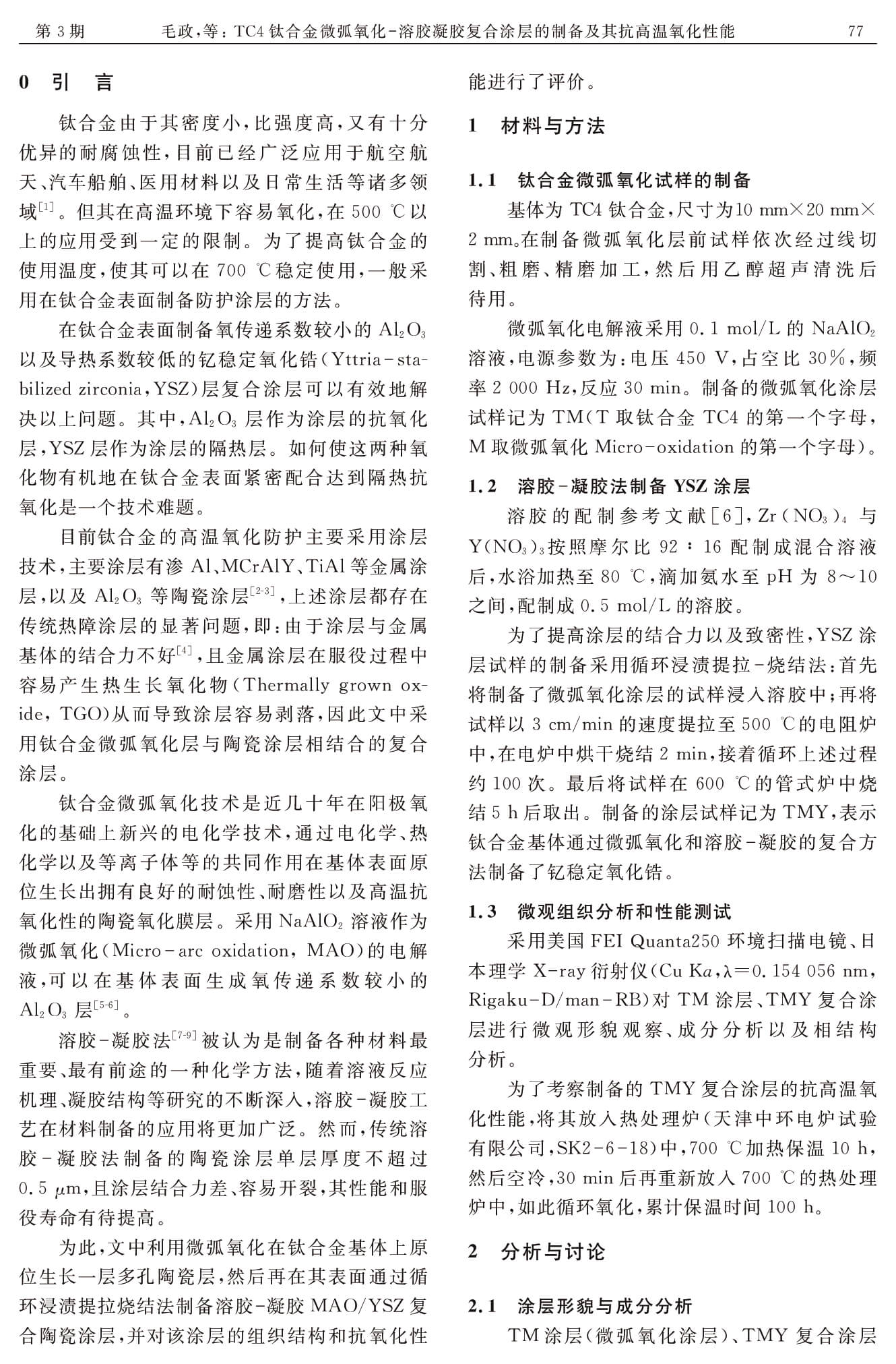 TC4钛合金微弧氧化溶胶凝胶复合涂层的制备及其抗高温氧化性能