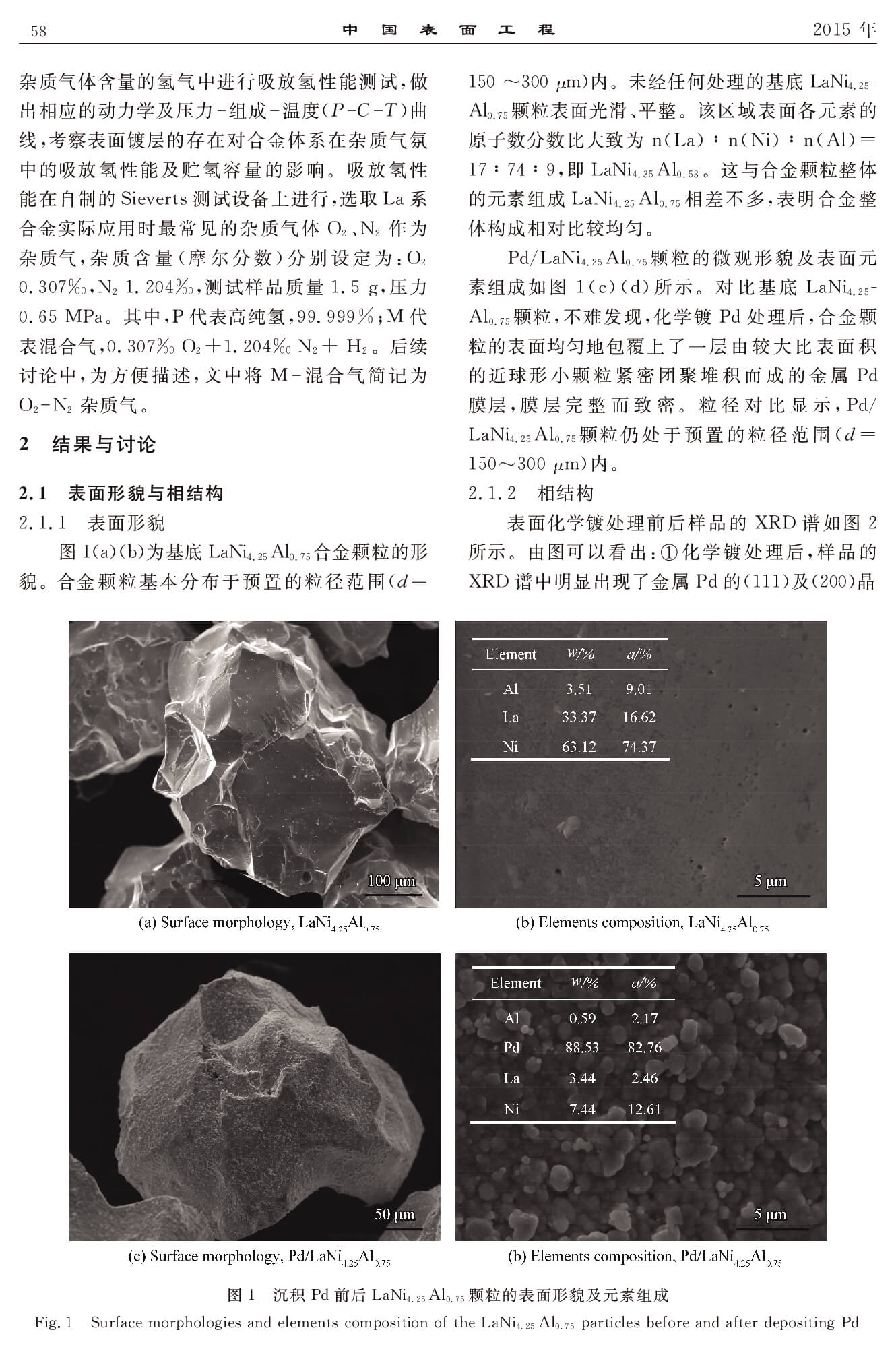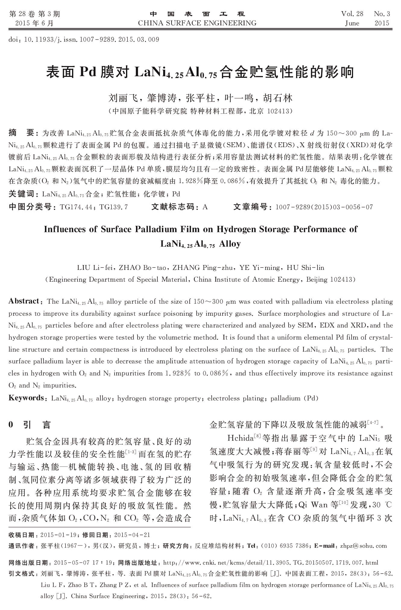 表面Pd膜对LaNi4.25Al0.75合金贮氢性能的影响