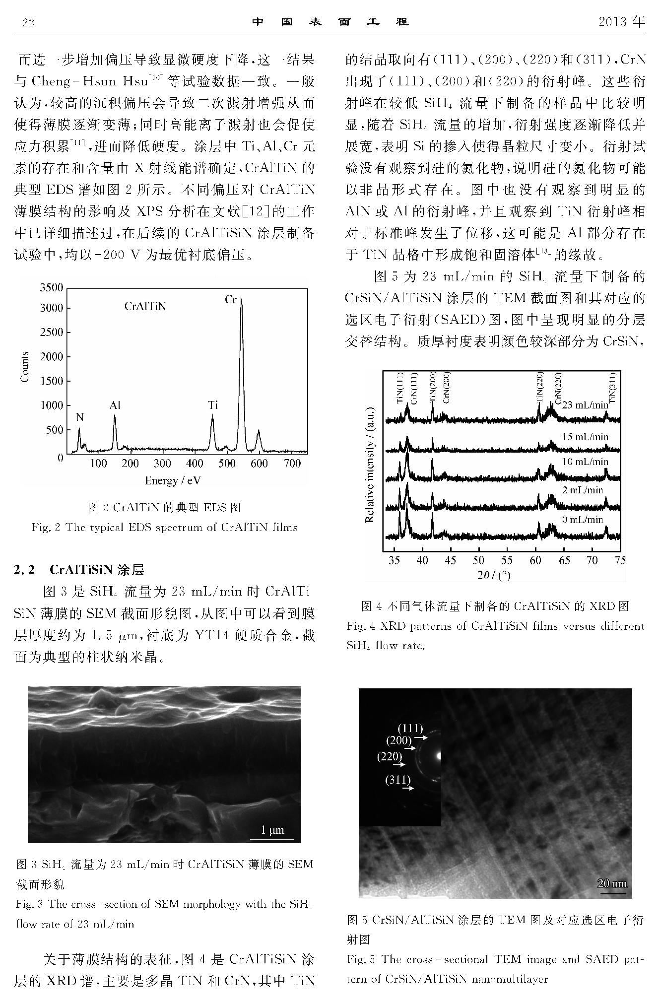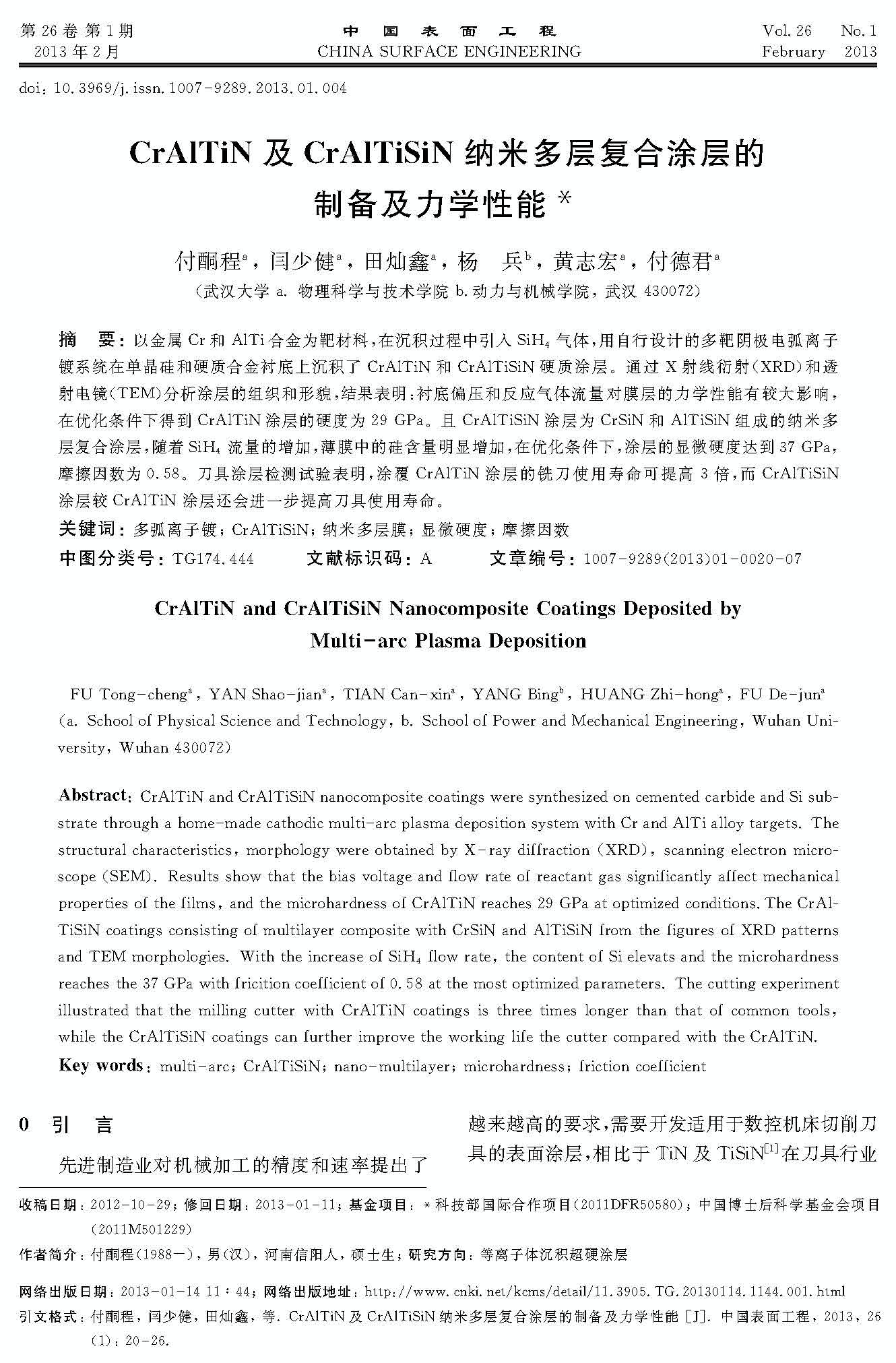 CrAlTiN及CrAlTiSiN纳米多层复合涂层的制备及力学性能