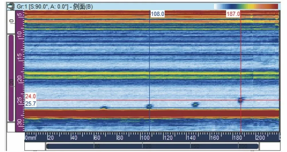 图8 复合板材试块直径为1mm平底孔的相控阵超声成像结果