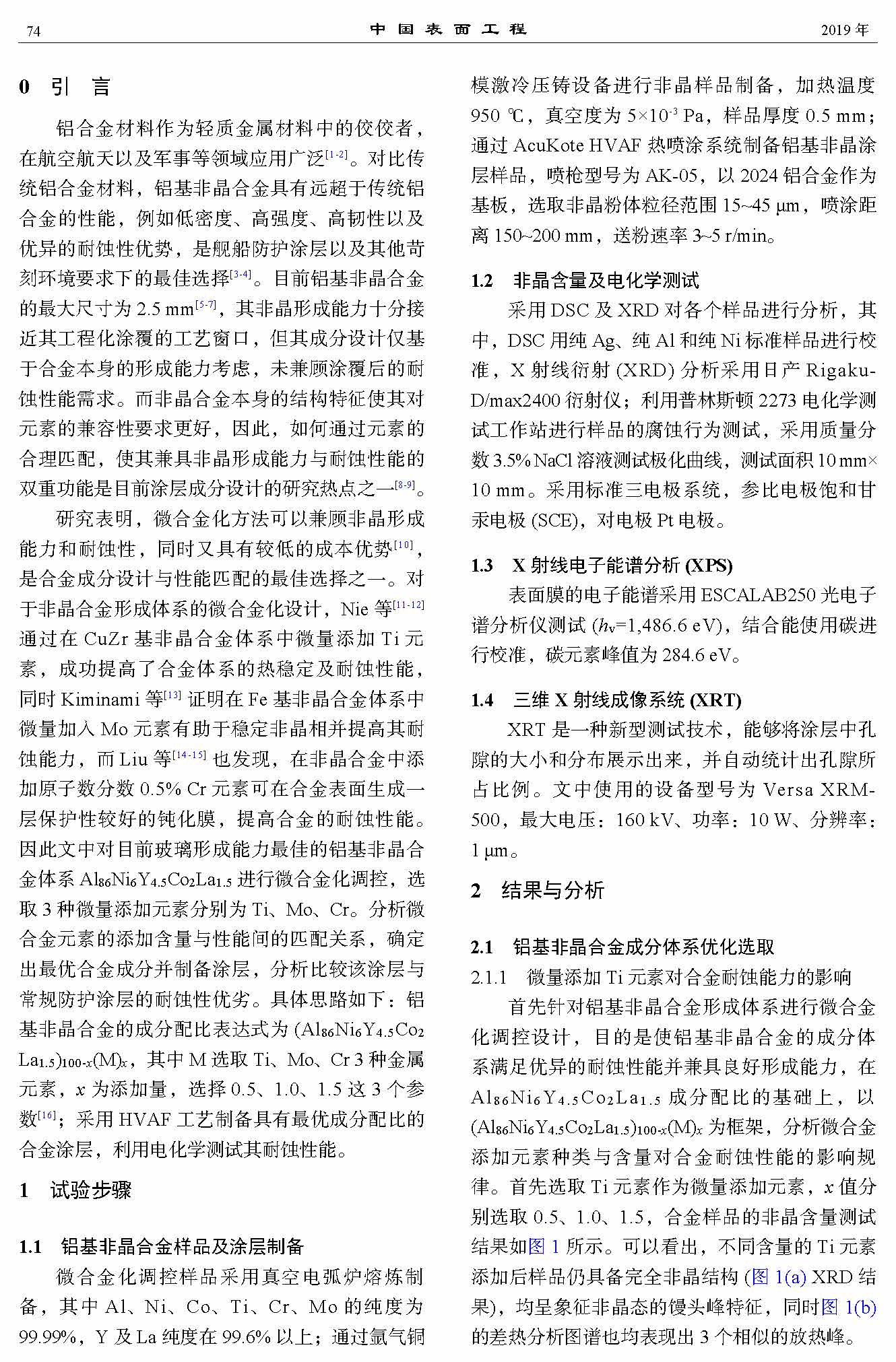 微合金化对铝基非晶合金涂层耐蚀性能的影响