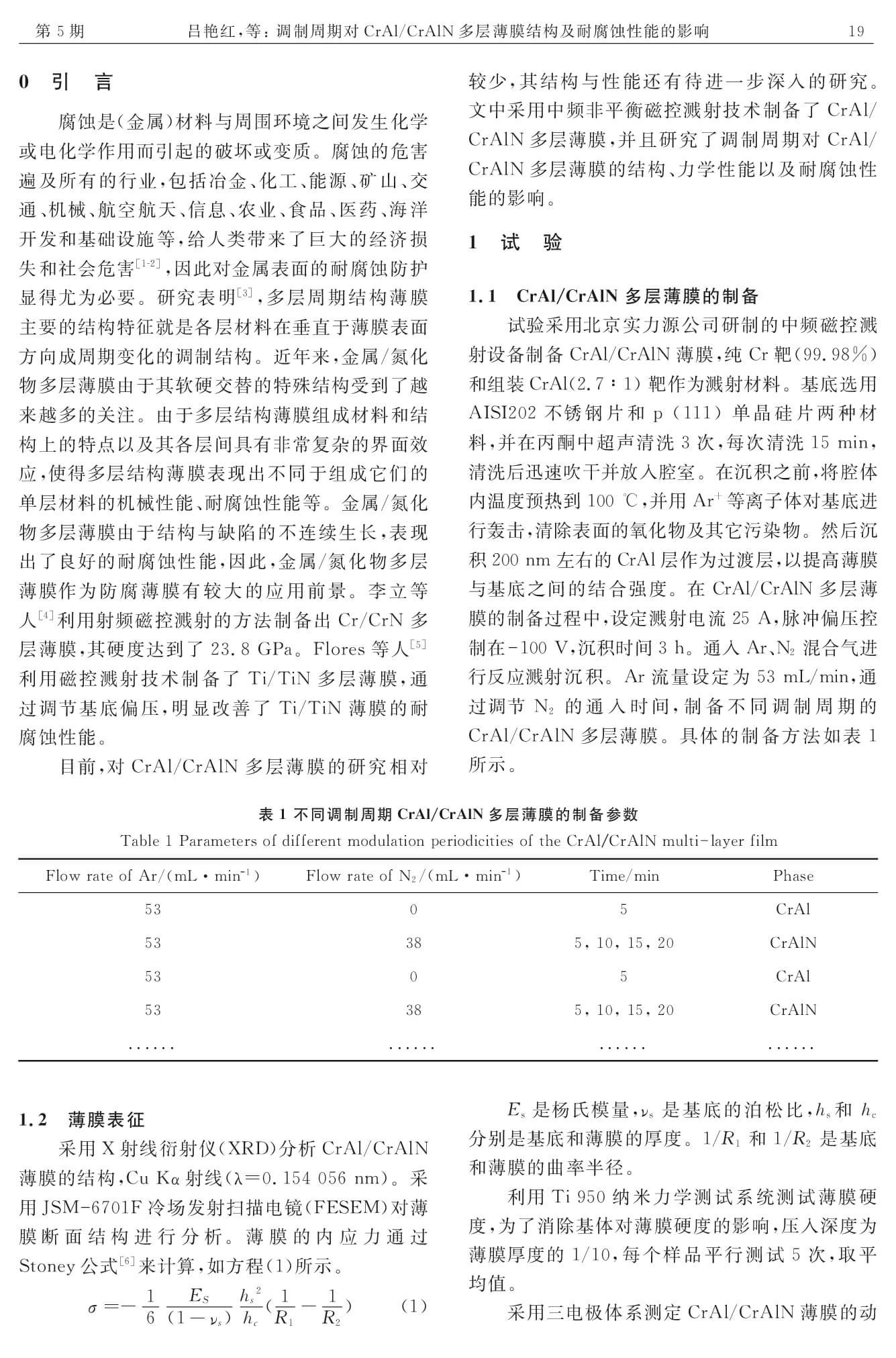 标签: 磁控溅射, CrA1/CrAIN, 多层薄膜, 微观结构, 耐腐蚀性能