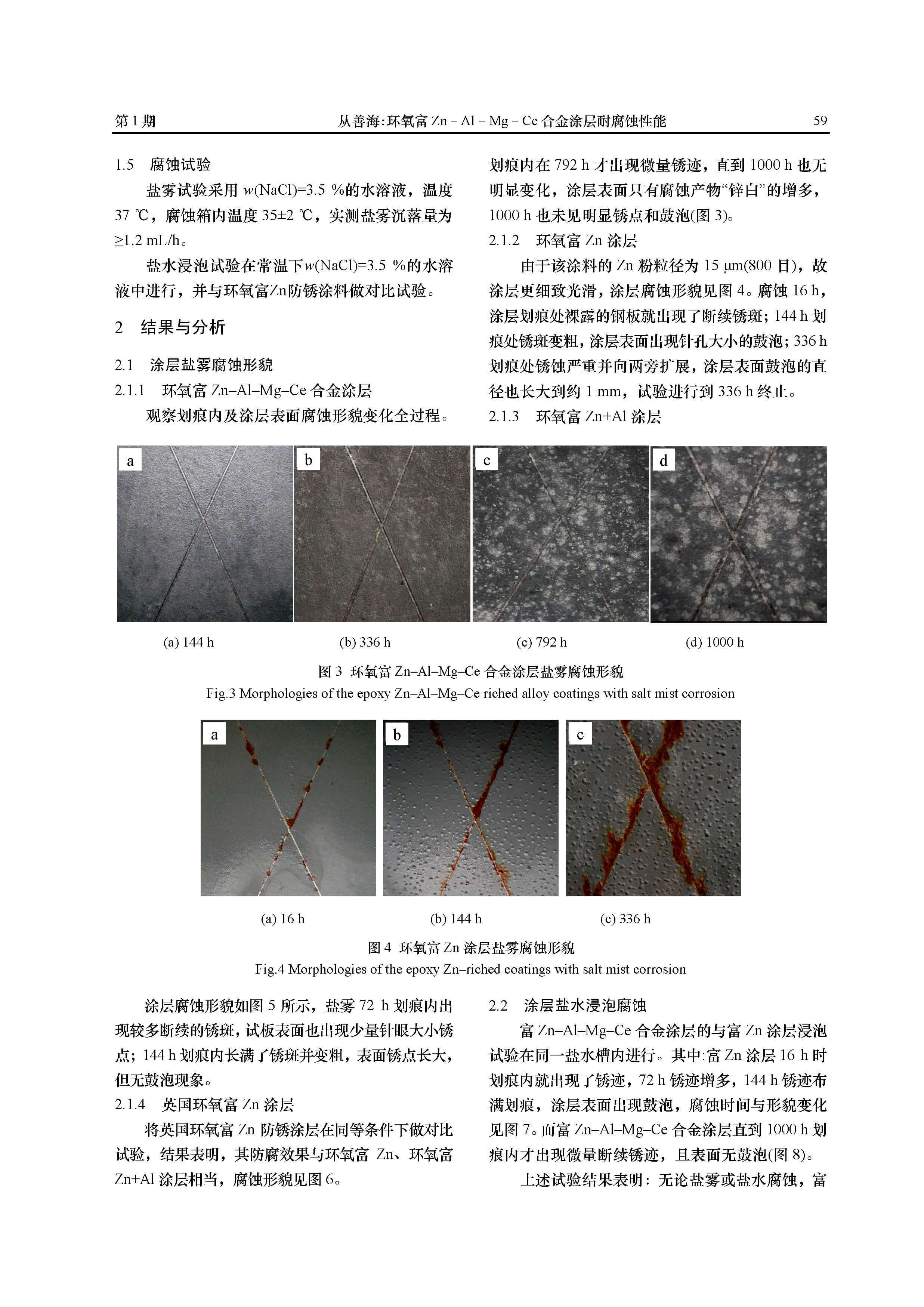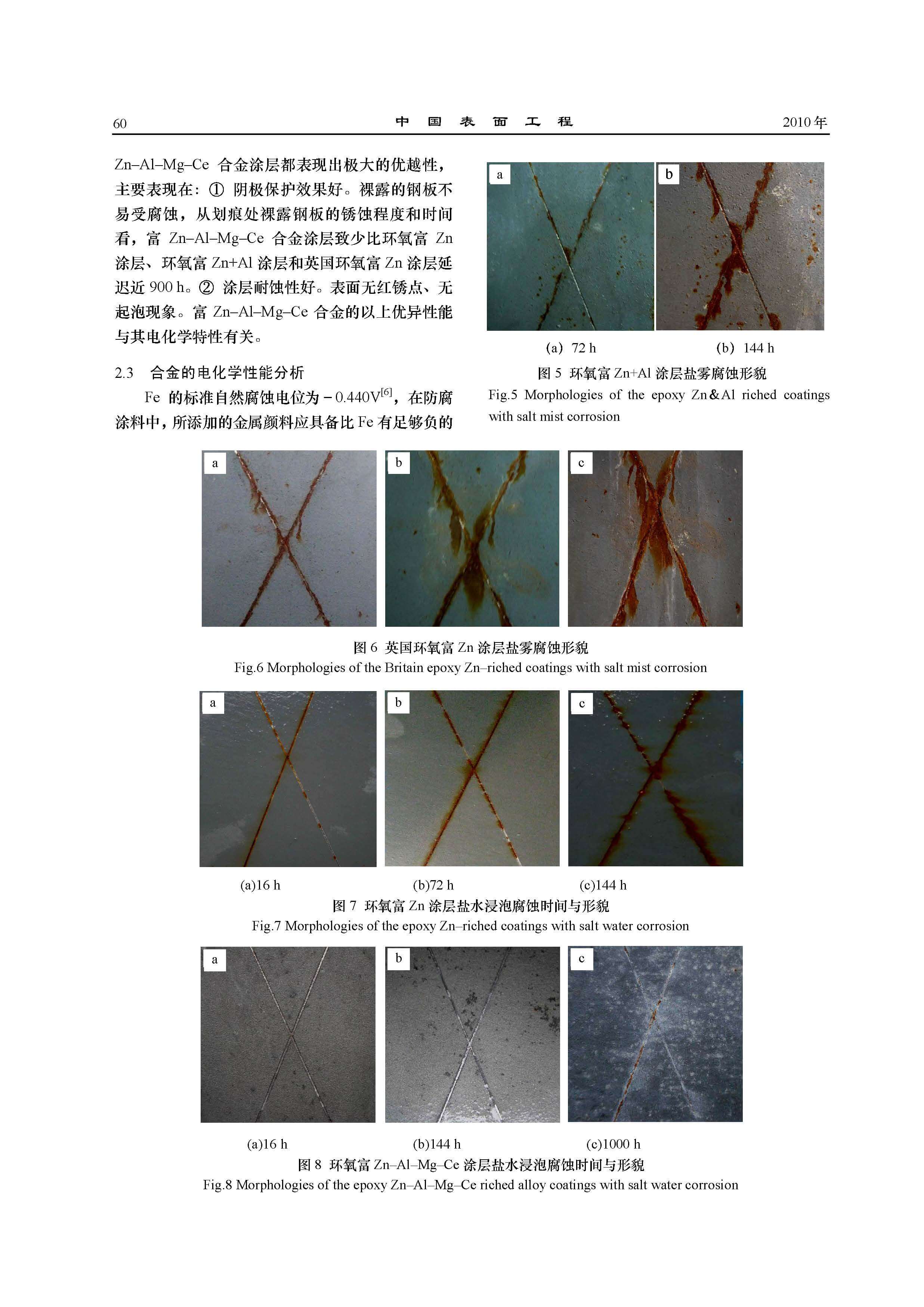 标签: Zn–Al–Mg–Ce合金, 防腐涂料, 盐雾腐蚀, 盐水腐蚀