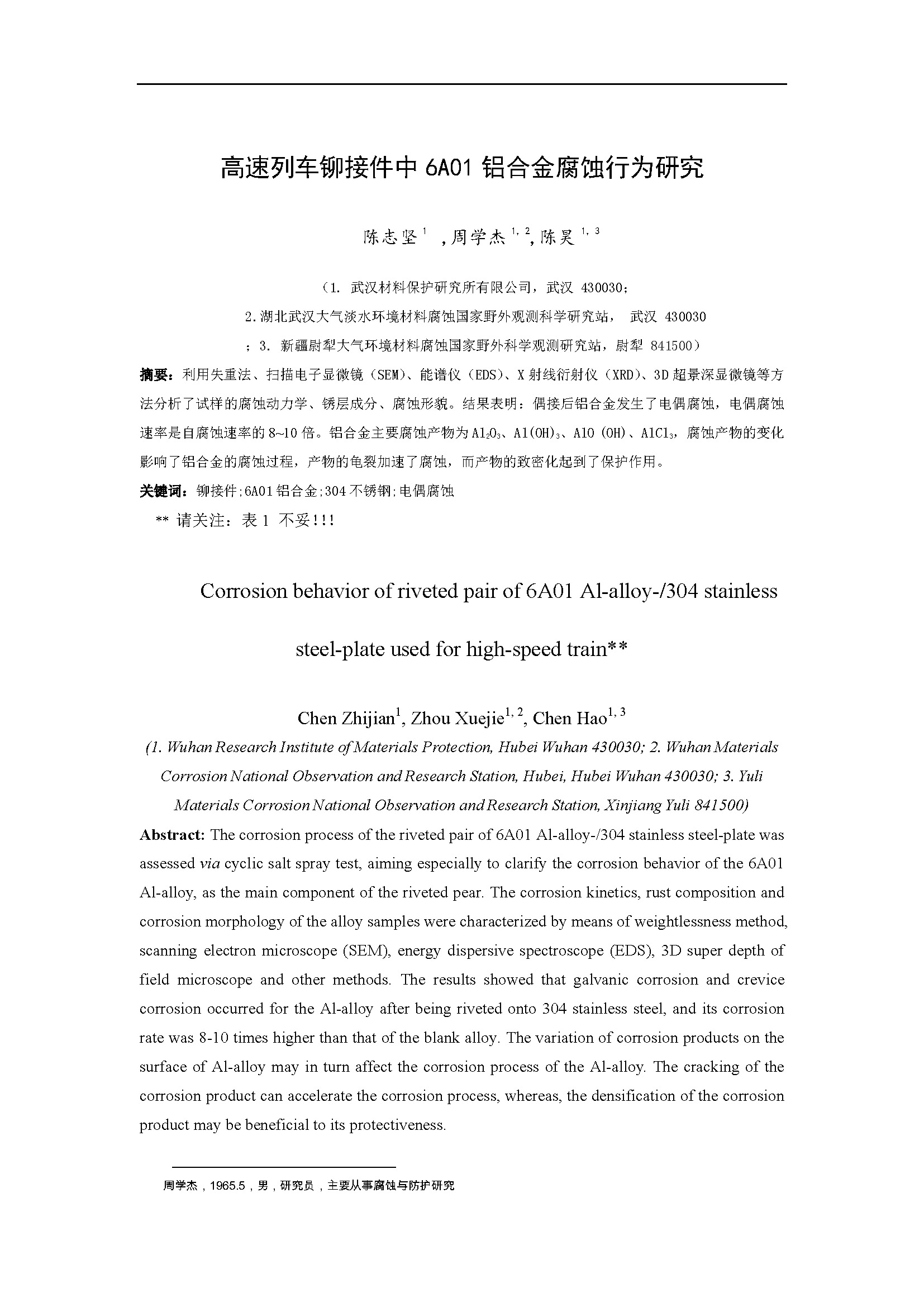 2021-11-25 15:07:39 作者:陈志坚 周学杰 陈昊 来源:中国腐蚀与防护学报 分享至: