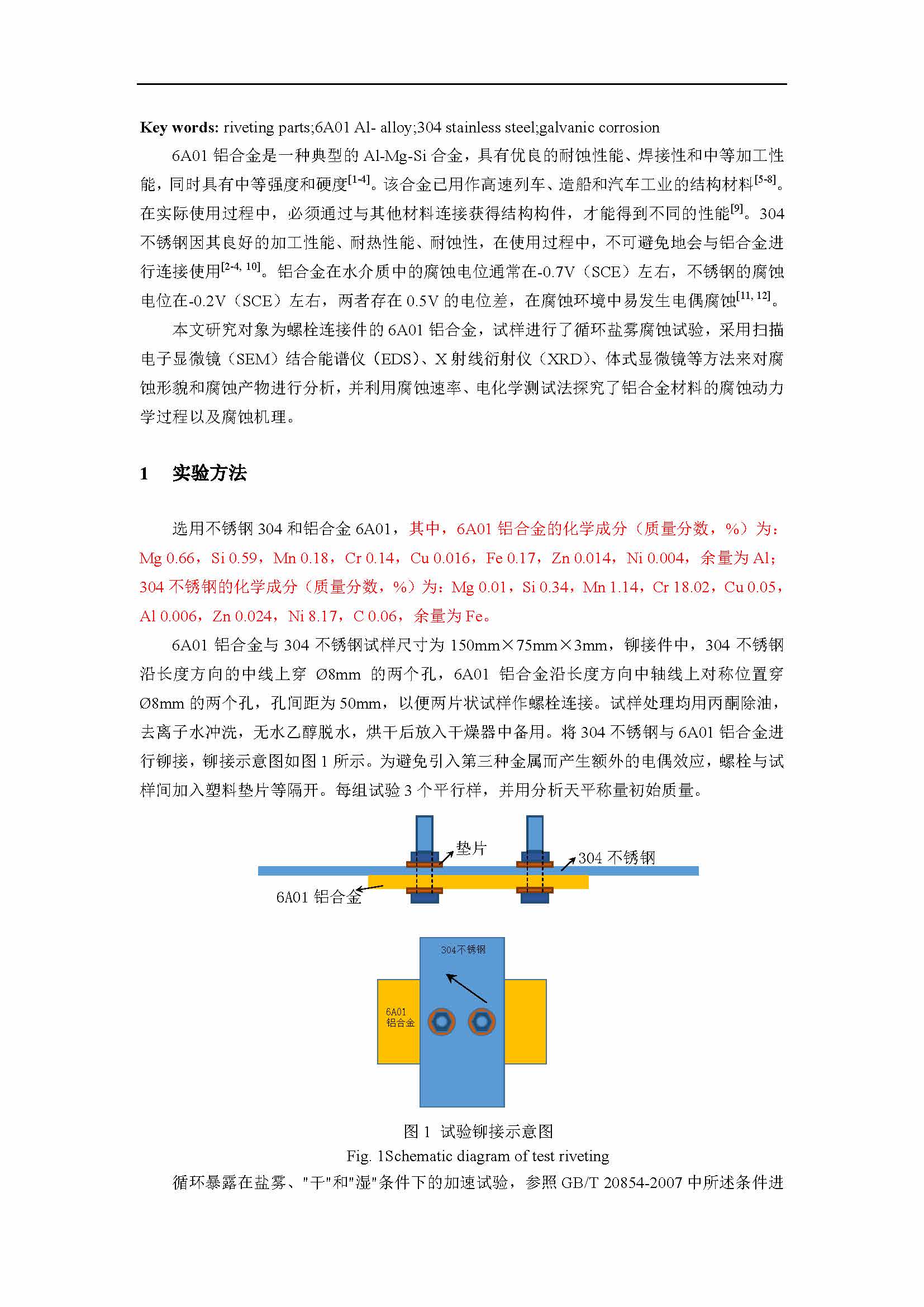 高速列车铆接件中6A01铝合金腐蚀行为研究