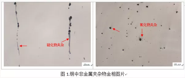 钢中的非金属夹杂物类型很多,在常规检验中,往往采用与标准等级对照的方法进行评级,相关的标准为GB/T 10516-2005 钢中非金属夹杂物含量的测定方法,ASTM E45-2013测定钢材夹杂物含量的试验方法,DIN 50602-1985 用标准图谱评定优质钢中非金属夹杂物含量的微观检验方法。