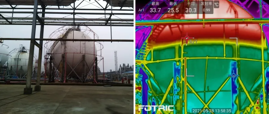 在对反应釜、高塔温度的实时检测中,FOTRIC 热像仪能够提供精准的非接触式测量,继而免去大量繁琐的贴合式、探入式传感器的安装和使用,有效降低了繁杂的学习和使用成本。