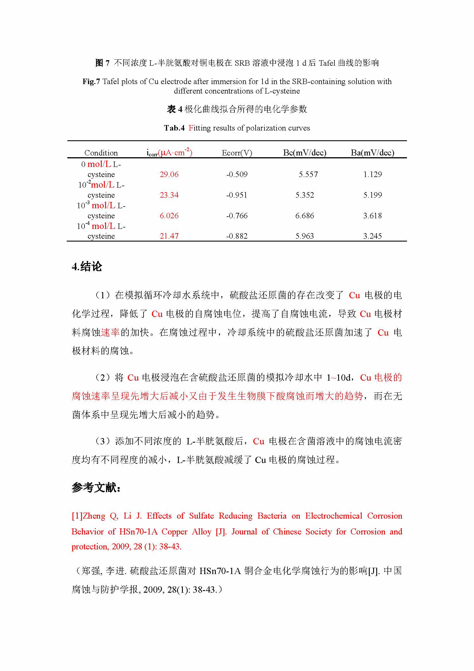 循环冷却水系统中硫酸盐还原菌对铜腐蚀行为的影响
