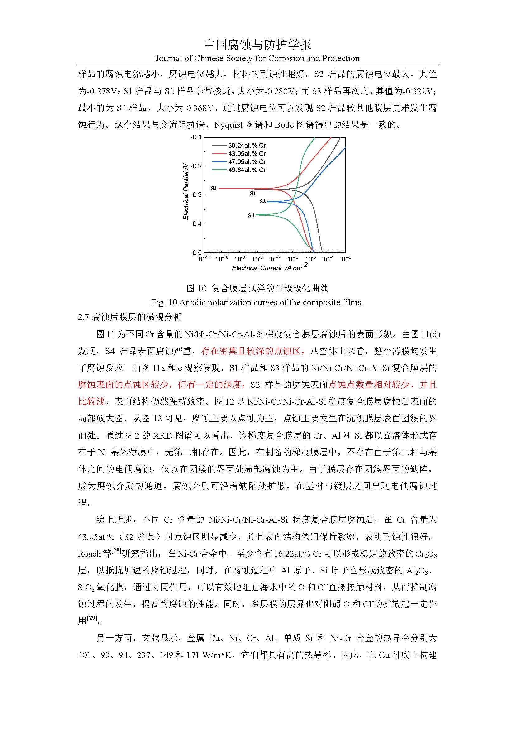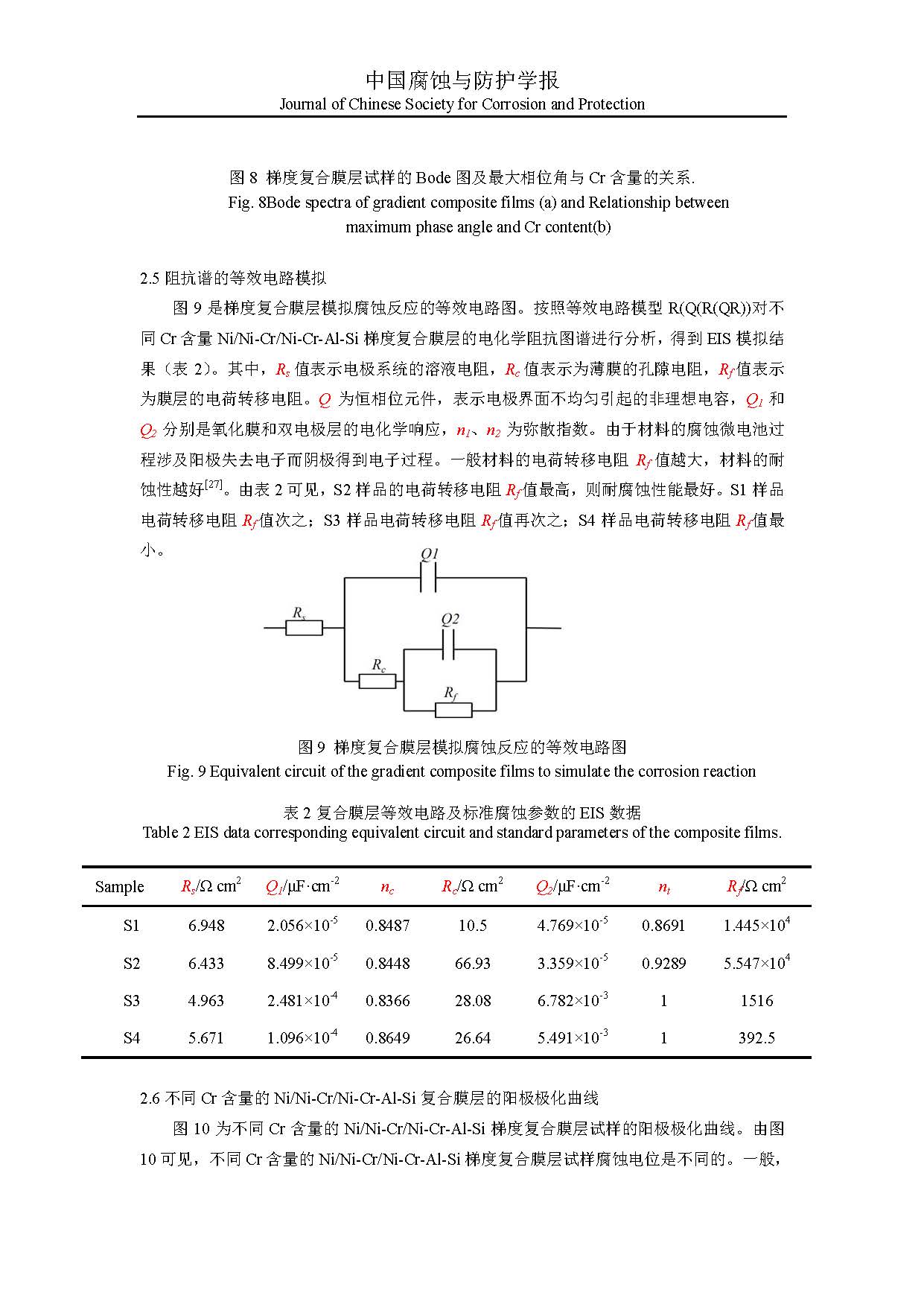 标签: Ni/Ni-Cr/Ni-Cr-Al-Si 复合膜层, 耐腐蚀性, Cr 含量, 电化学阻抗谱, 阳极极化曲线