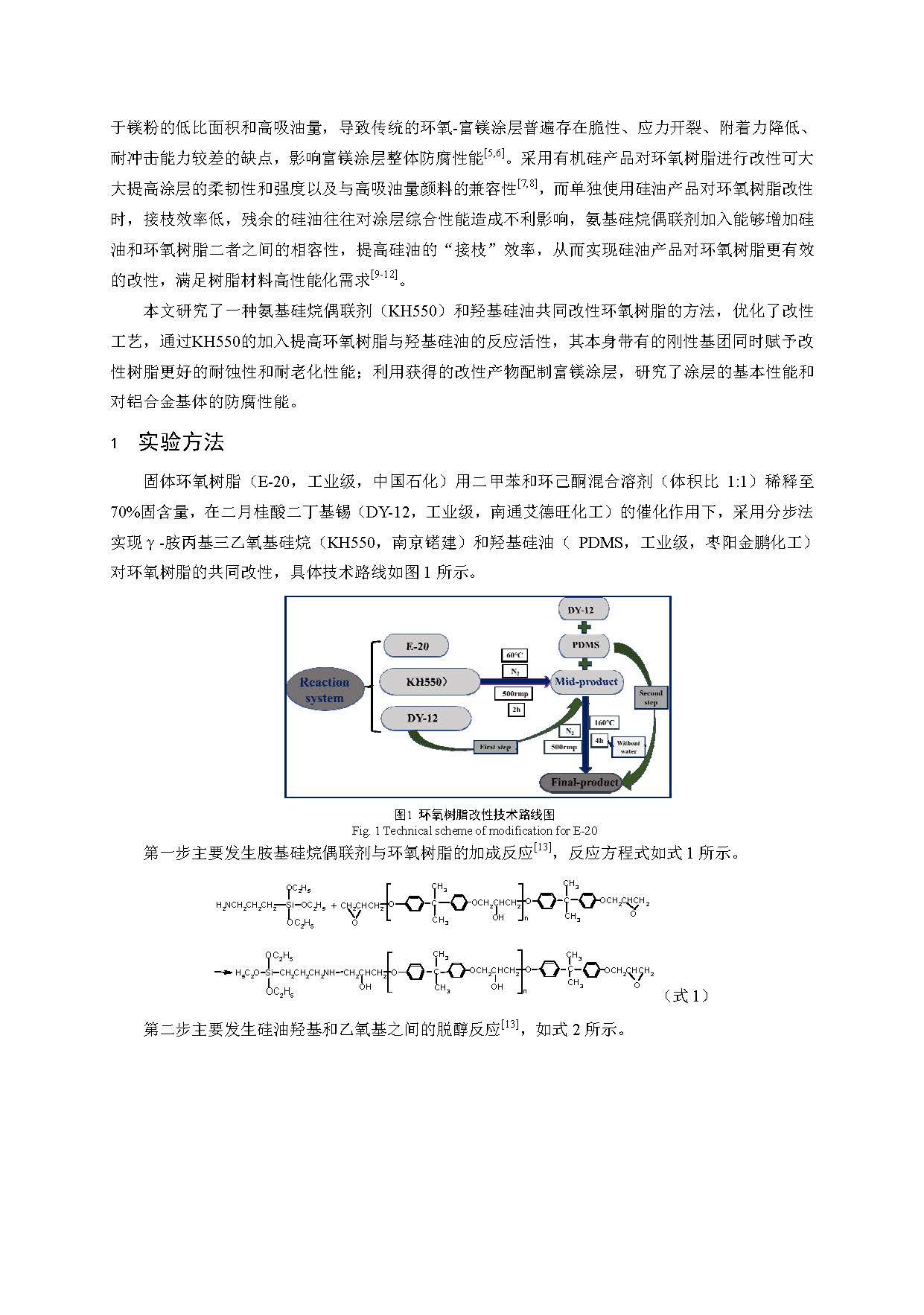 硅烷偶联剂(KH550)和羟基硅油共同改性环氧树脂及配制富镁底漆性能研究