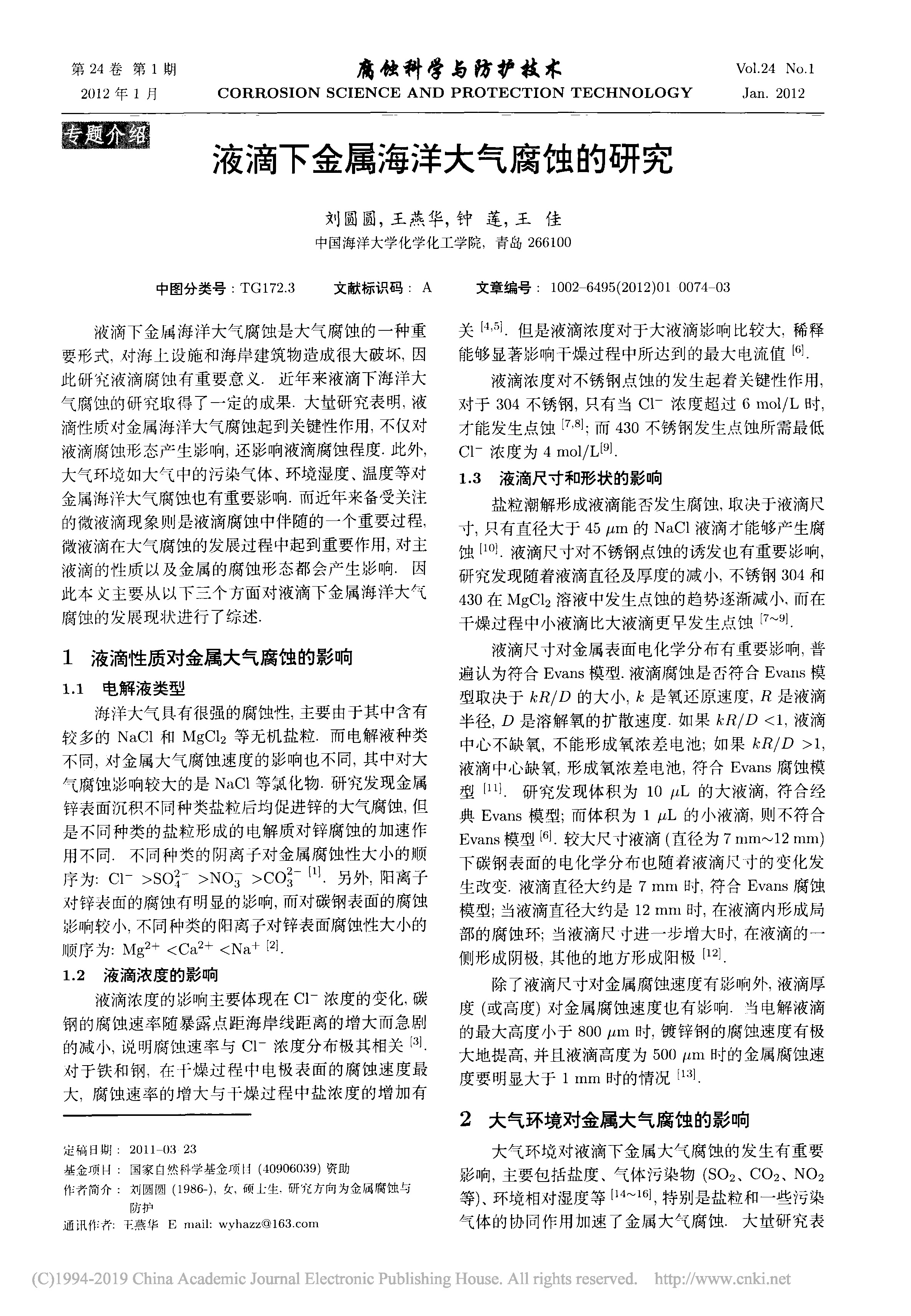 2022-01-18 14:28:39 作者:刘圆圆; 王燕华; 钟莲; 王佳 来源:腐蚀科学与防护技术 分享至: