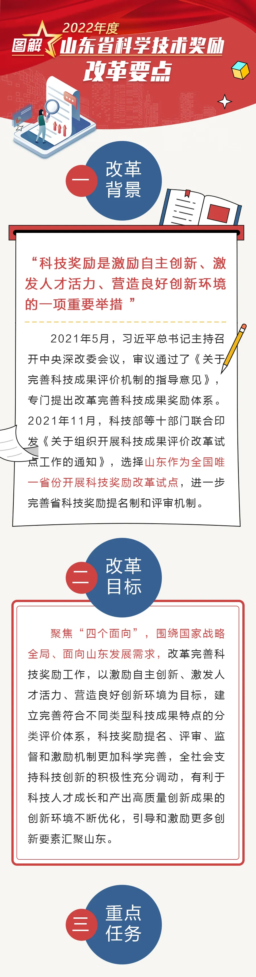 聚焦原始创新和重大战略需求,把激励承担国家和省重大科技任务作为重中之重,同时鼓励潜心研究、自由探索。