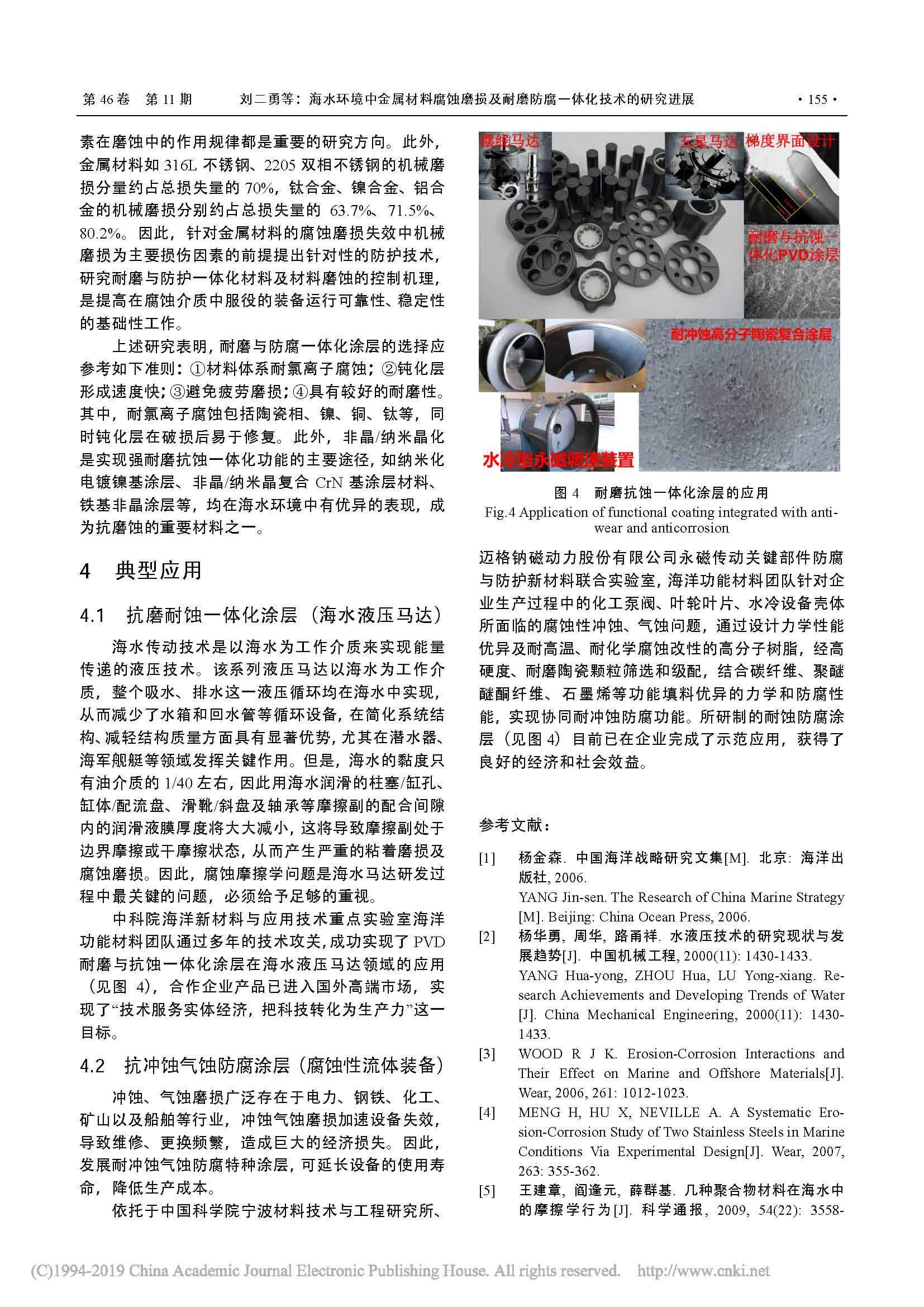 海水环境中金属材料腐蚀磨损及耐磨防腐一体化技术的研究进展