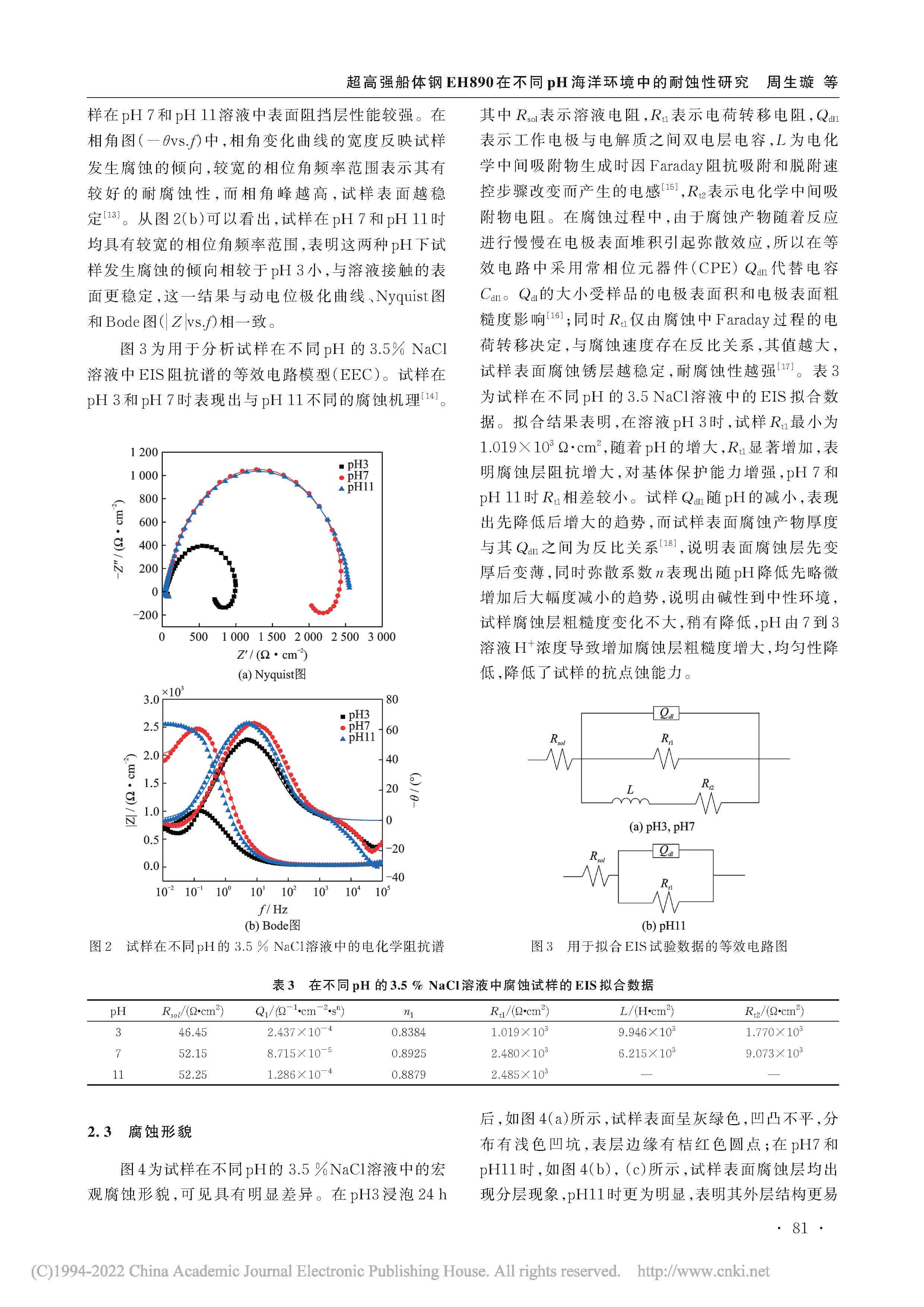 超高强船体钢 EH890 在不同 pH 海洋环境中的 耐蚀性研究