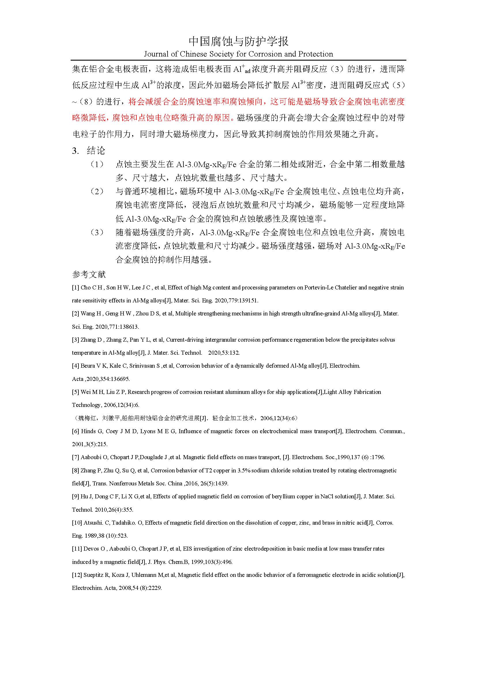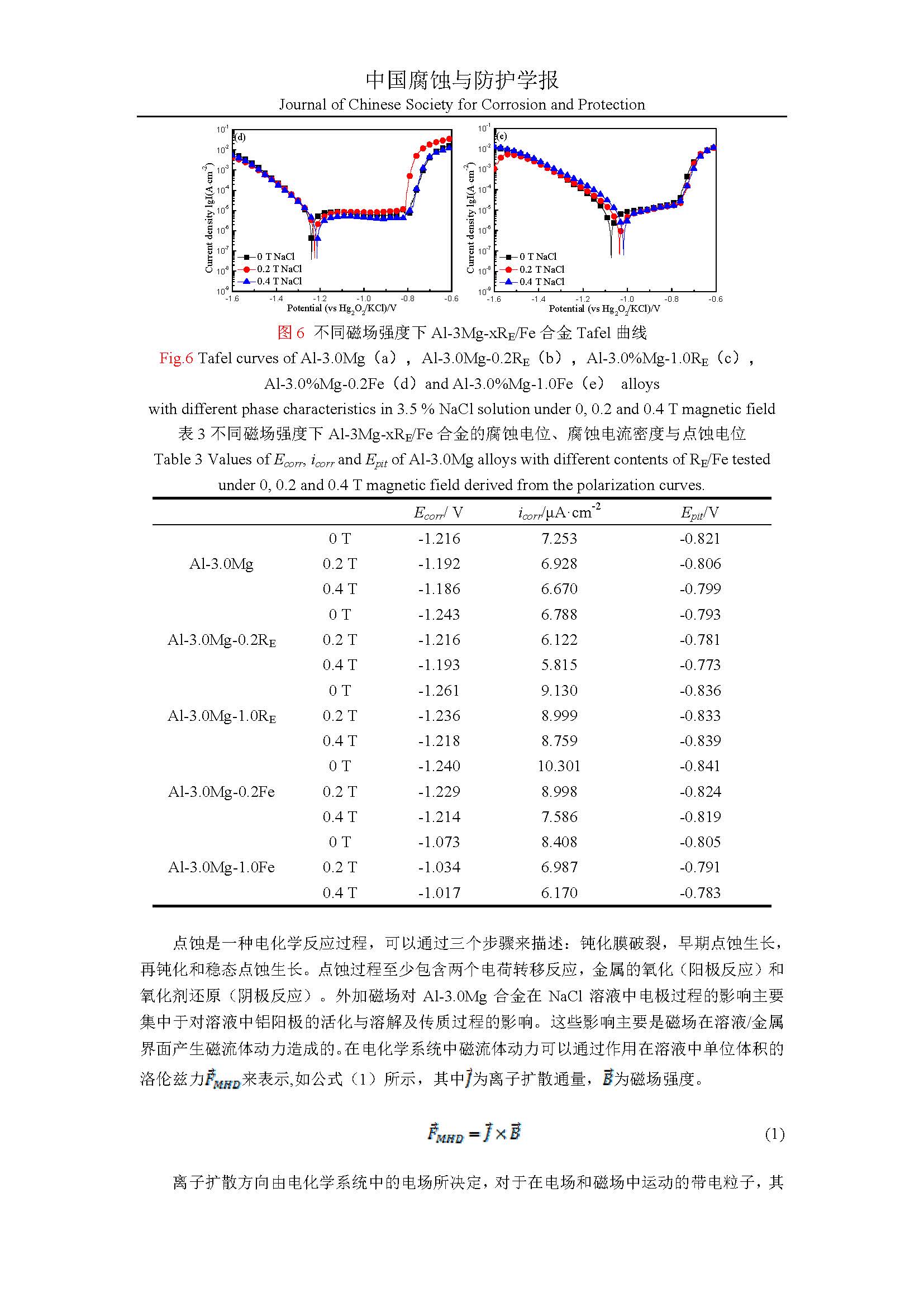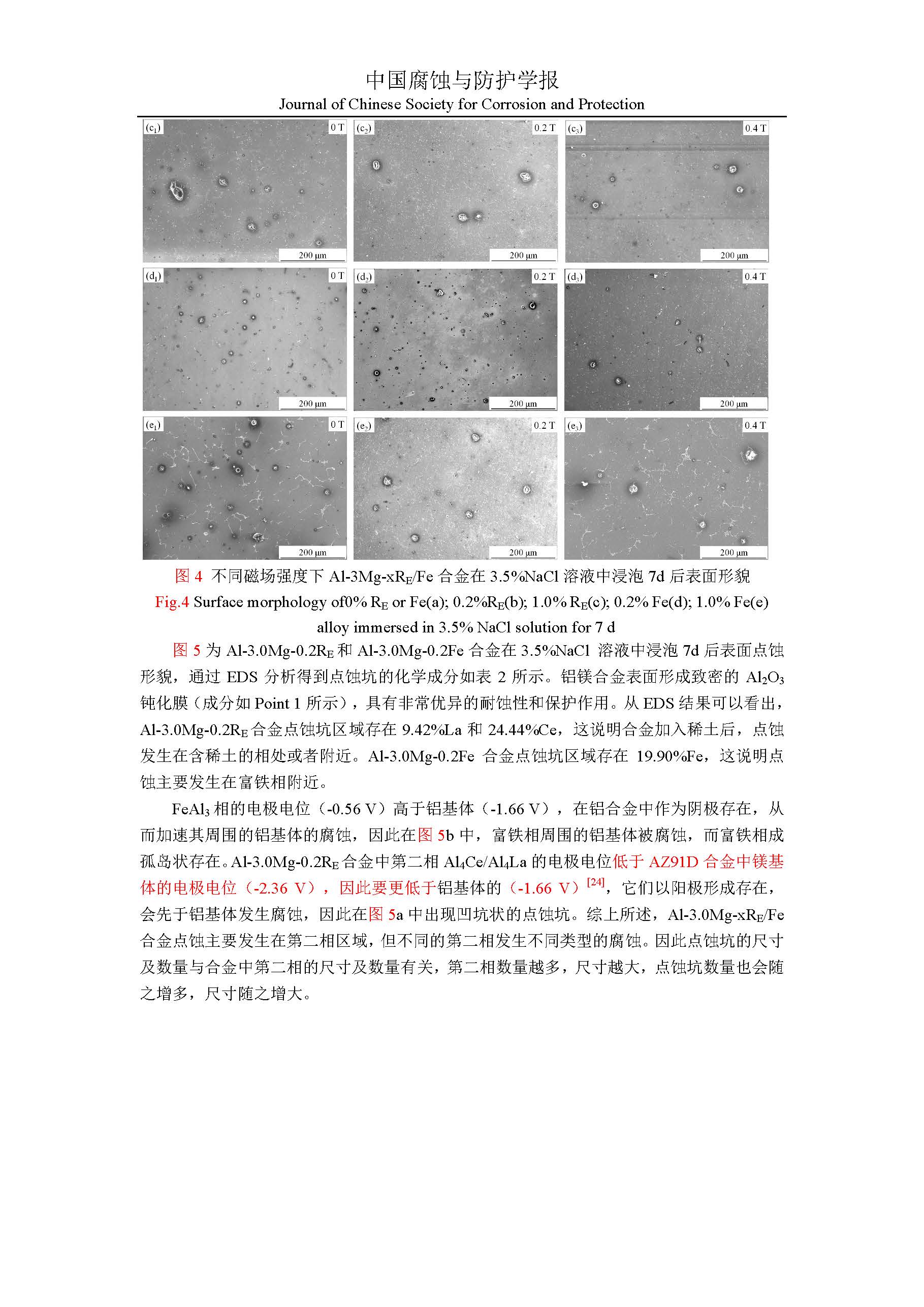 标签: 不同物相特性铝镁合金, 稀土元素, 磁场, 腐蚀行为, 点蚀