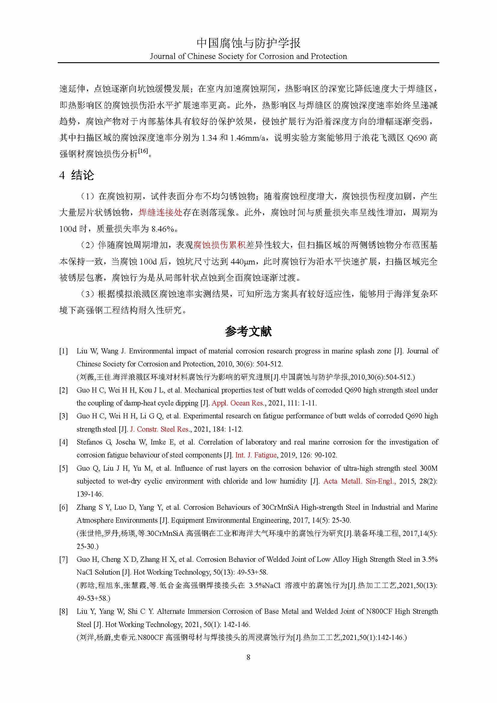 2022-02-23 16:59:26 作者:魏欢欢 雷天奇 关晓迪 郑东东 辛振科 来源:中国腐蚀与防护学报 分享至:
