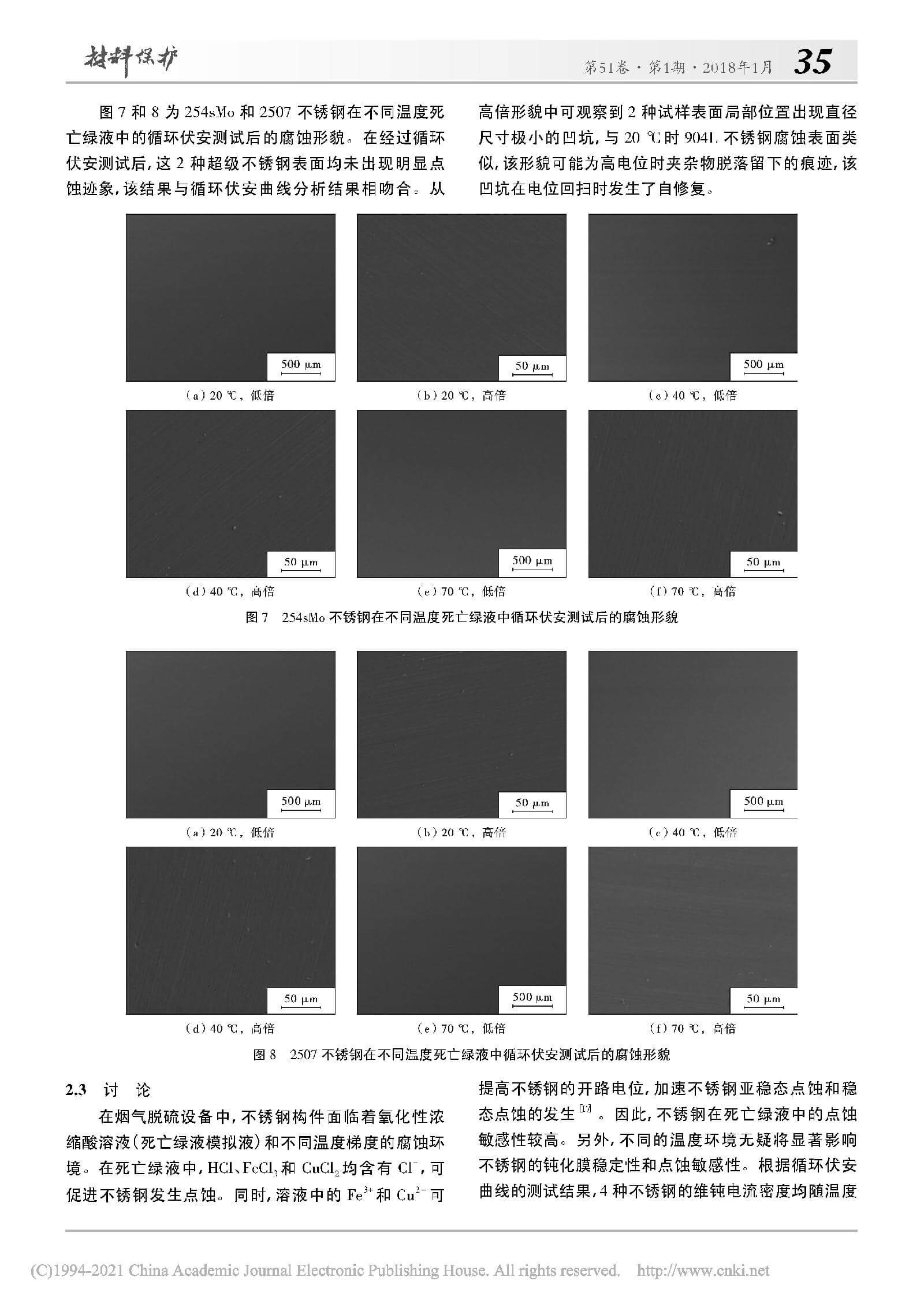 几种超级不锈钢在模拟烟气脱硫环境中的点蚀行为