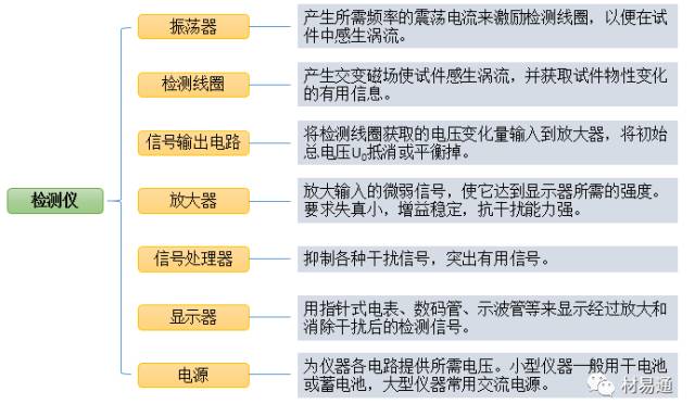 一般的涡流检测仪主要由振荡器、检测线圈、信号输出电路、放大器、信号处理器、显示器、电源等部分组成。