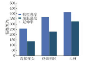 图5 焊接接头、热影响区和母材的拉伸试验结果
