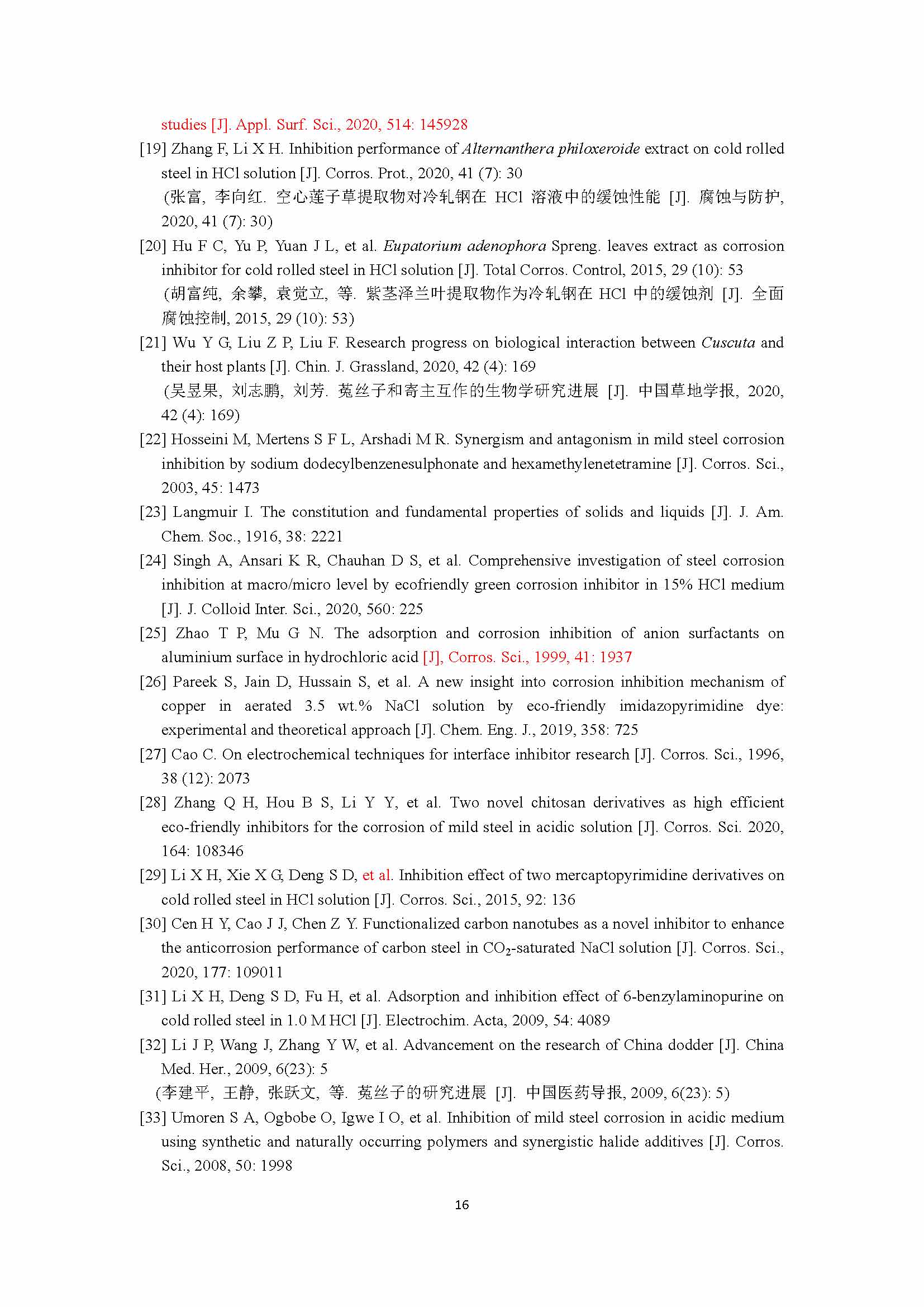 菟丝子提取物与碘化钾对冷轧钢在盐酸中的缓蚀协同效应