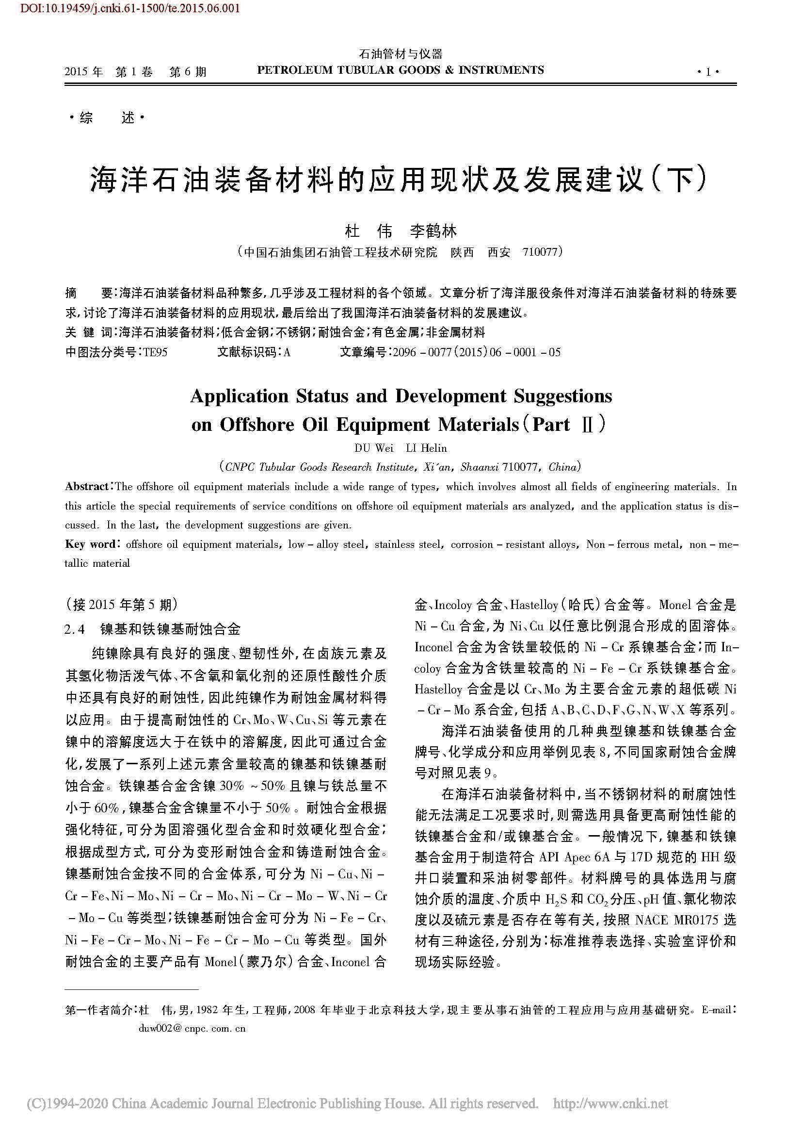 高硫高盐油气田地面设施耐蚀合金选材关键技术及工程应