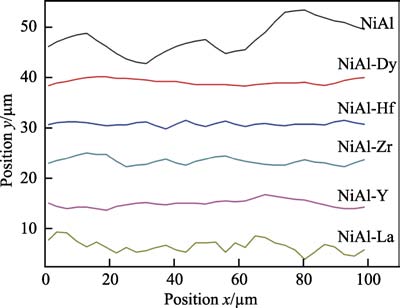 图5 活性元素改性β-NiAl 合金1200 ℃循环氧化15 h 后的氧化膜褶皱曲线[15]