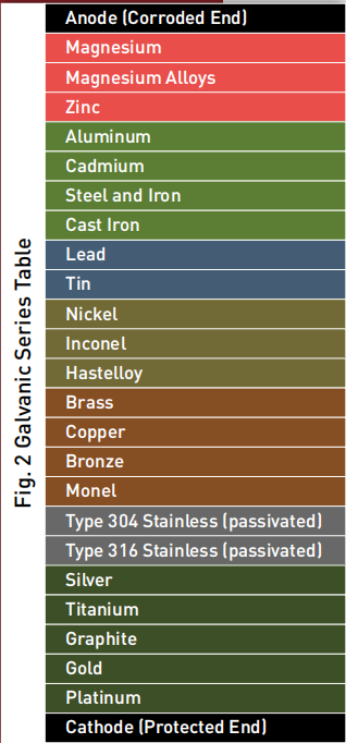 例如:与316型不锈钢部件相结合的铝零件,预计会比钢和锡组成的部件遭受更多的原电池腐蚀效应。