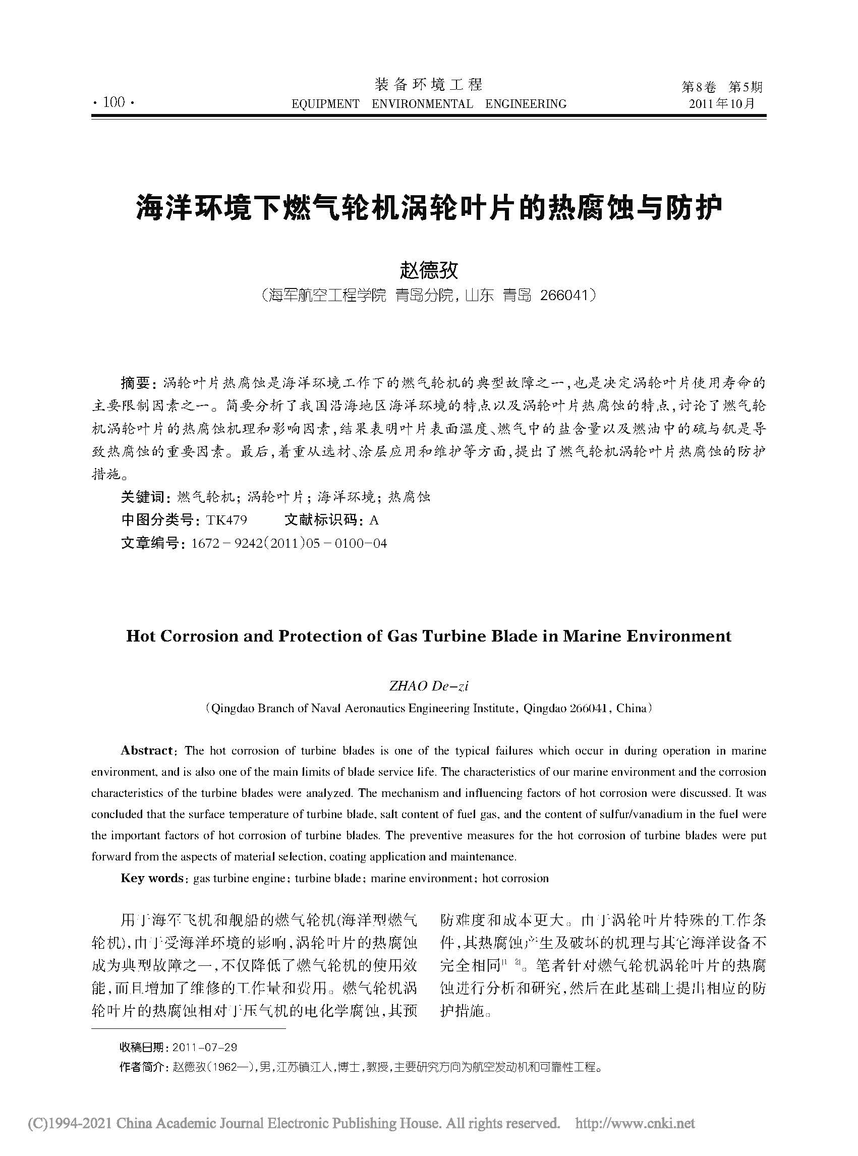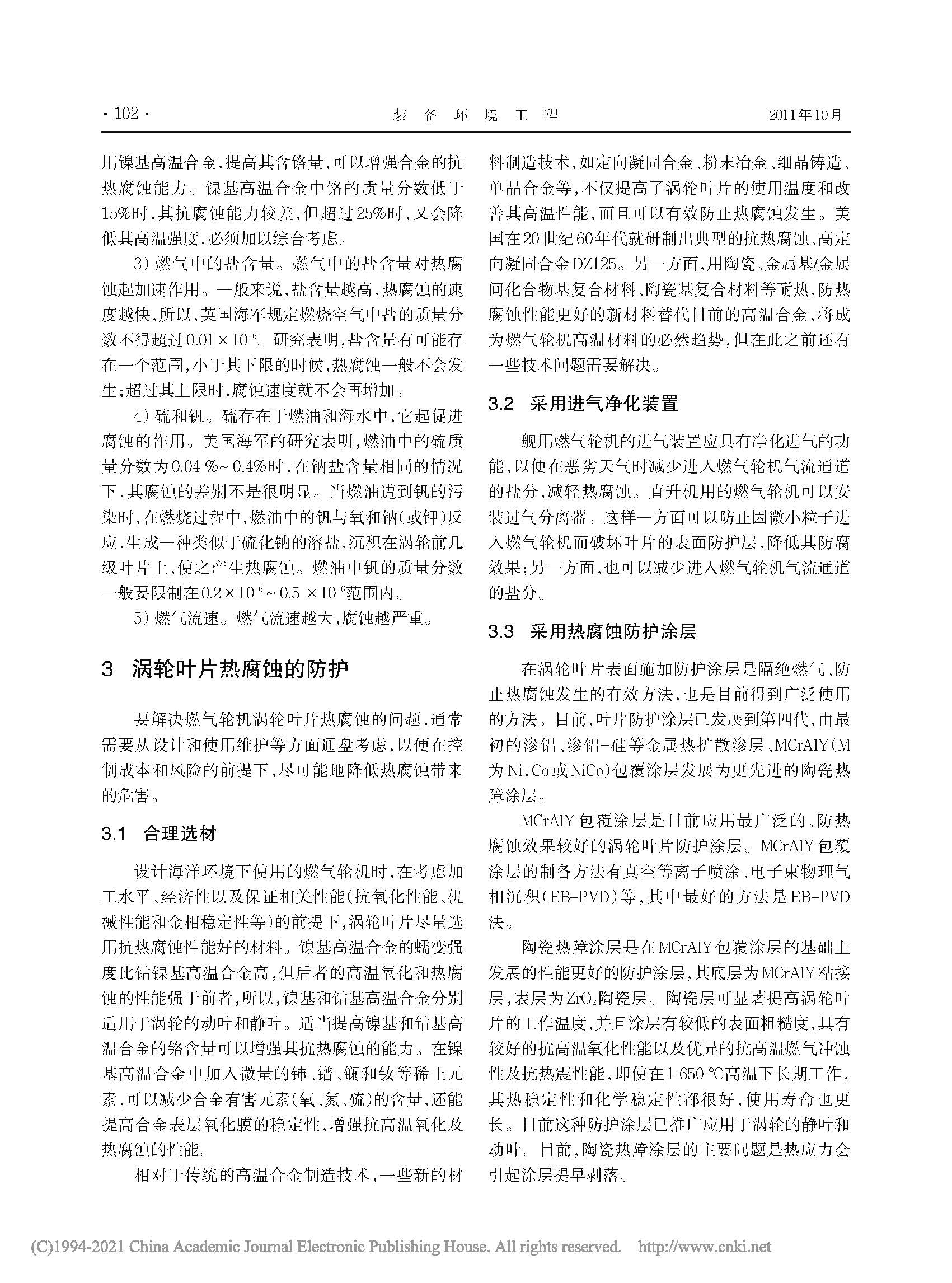 海洋环境下燃气轮机涡轮叶片的热腐蚀与防护
