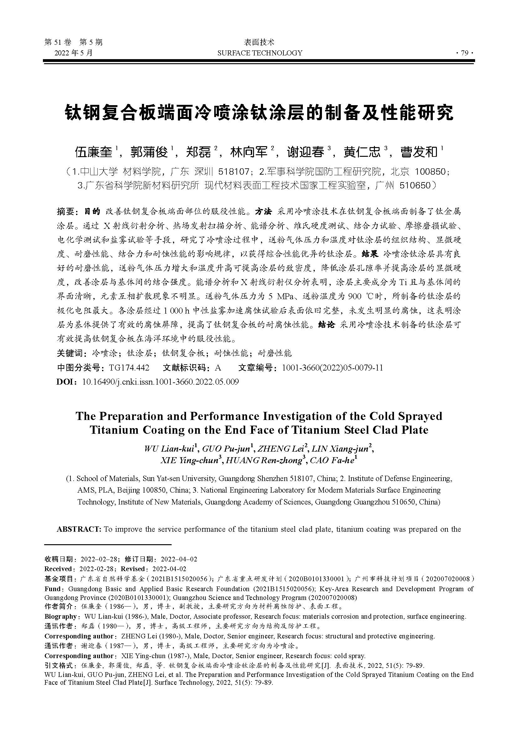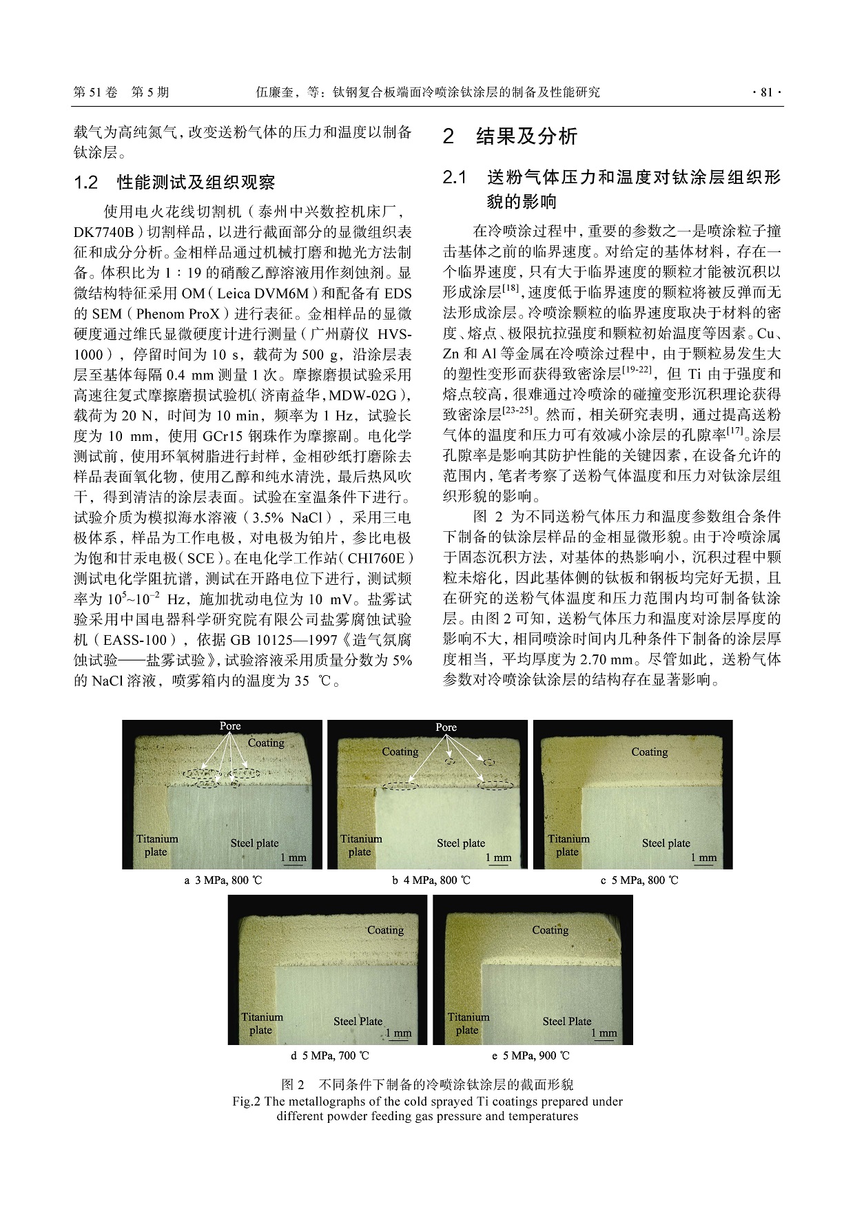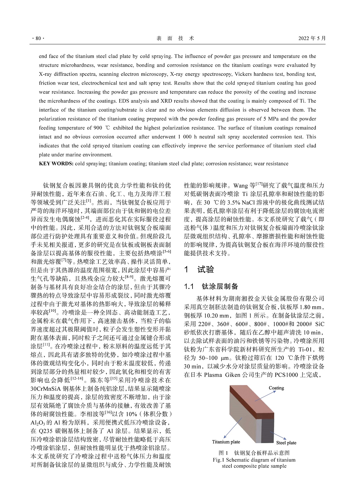 钛钢复合板端面冷喷涂钛涂层的制备及性能研究
