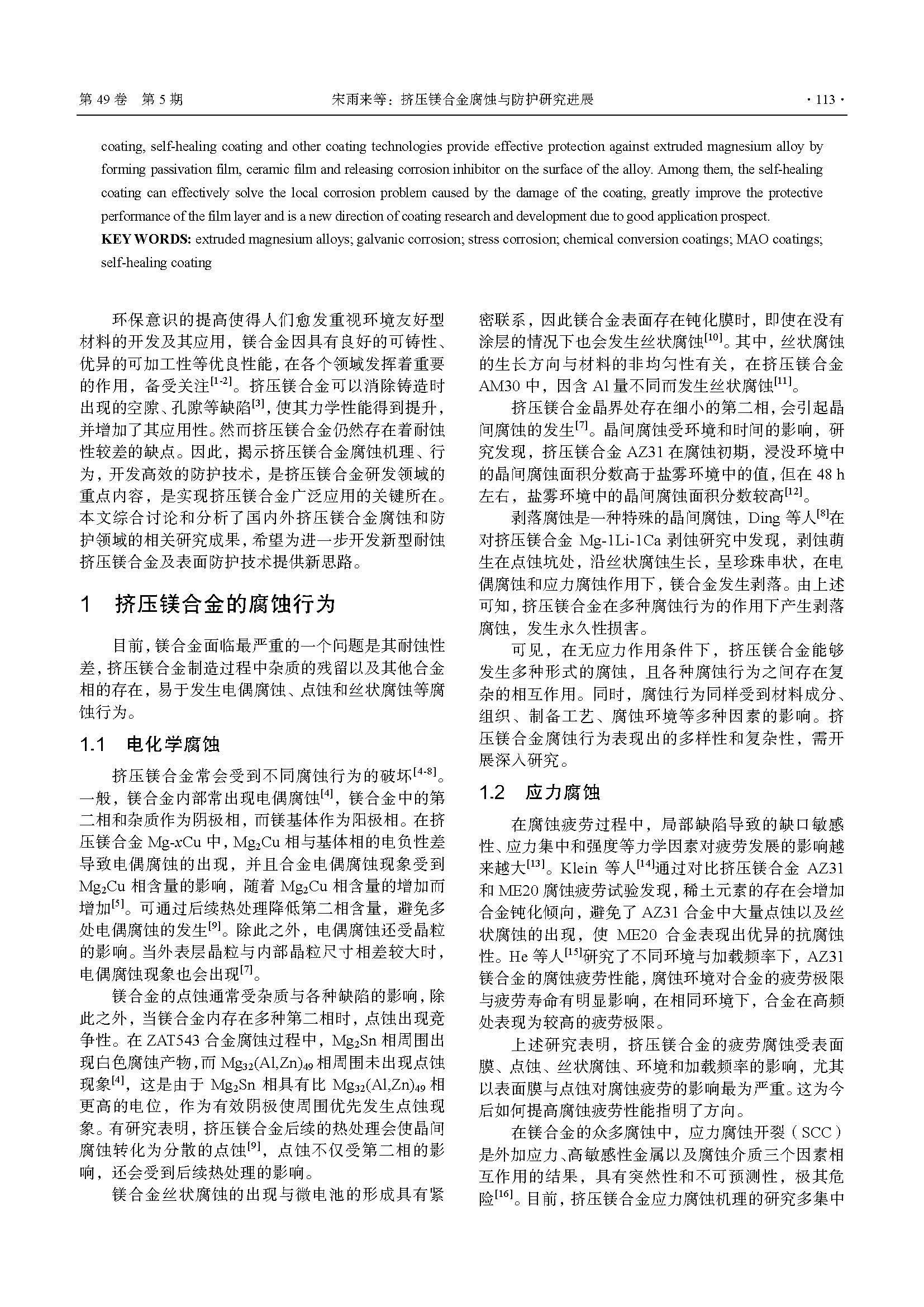 挤压镁合金腐蚀与防护研究进展