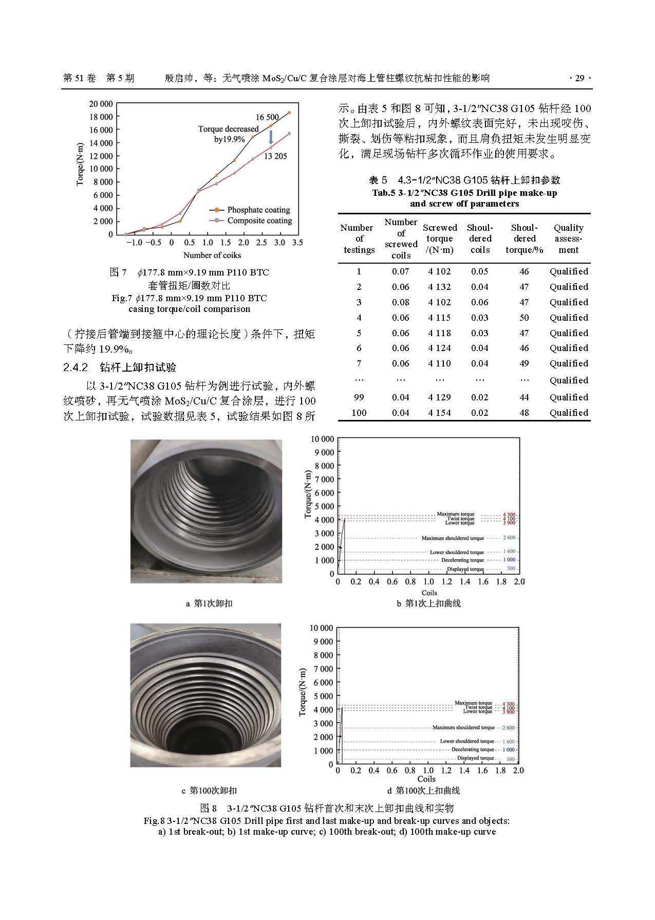 无气喷涂 MoS2/Cu/C 复合涂层对海上管柱螺纹抗粘扣性能的影响