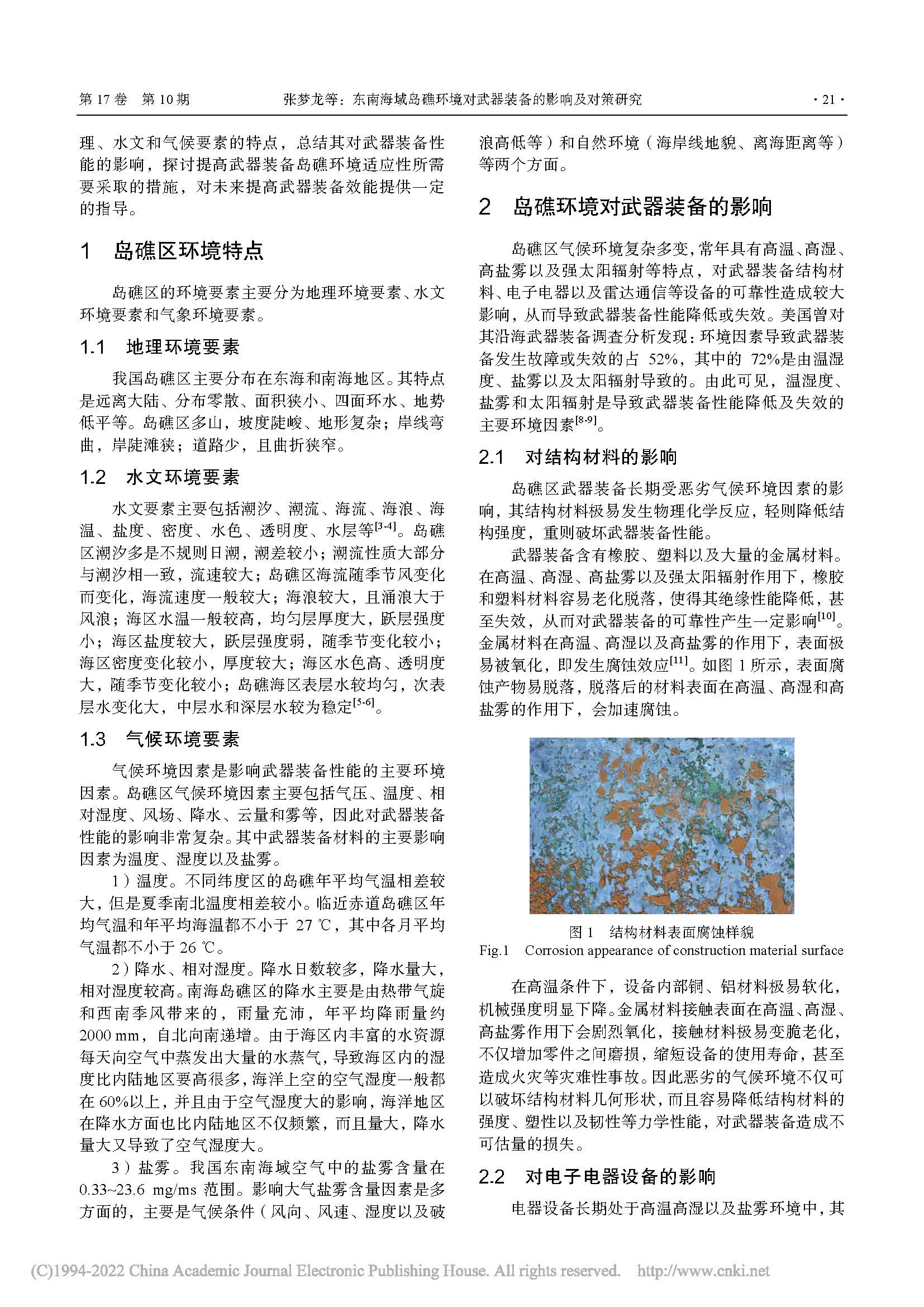 东南海域岛礁环境对武器装备的影响及对策研究