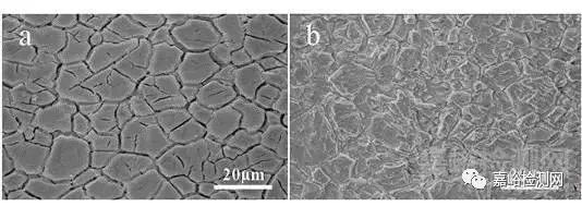 第二,在观察材料的氧化膜截面形貌时,要注意采用扫描电子显微镜的背散射模式进行观察。扫描电镜在腐蚀形貌观察时,通常有两种工作模式,一种是二次电子相模式,一种是背散射模式。二次电子相通过测试二次电子,来获得试样表面的形貌,而背散射模式则可以通过测试背散射电子,获得试样表面元素分布的情况。通过背散射模式观察腐蚀试样氧化膜界面的形貌,可以很容易地分辨出氧化膜内元素的分布,从而判断出氧化膜是单层结构还是多层结构,如图4所示。