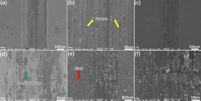 分别测试了新型F级船用低温钢板表面生成不同氧化物后的往复摩擦行为,并结合白光干涉仪以及扫描电子显微镜分别对钢样的显微组织形貌和磨痕形貌进行了表征。结果表明:γ-FeOOH氧化层钢样、原始钢样、Fe3O4氧化层钢样的耐磨蚀性能依次变高。其中,致密完整的Fe3O4氧化层钢样的磨损量最低,磨痕轮廓深度和尺寸都最小,表面以粘着磨蚀为主,耐蚀性也最好;γ-FeOOH氧化层微观结构较为疏松,摩擦系数最小,但是在摩擦腐蚀的协同作用下磨损量最大,磨损机理皆以磨粒磨损为主;未处理钢样的耐磨蚀性能处于两种预氧化钢样之间,以磨粒磨损为主,且表面有更多的犁沟和凹坑。