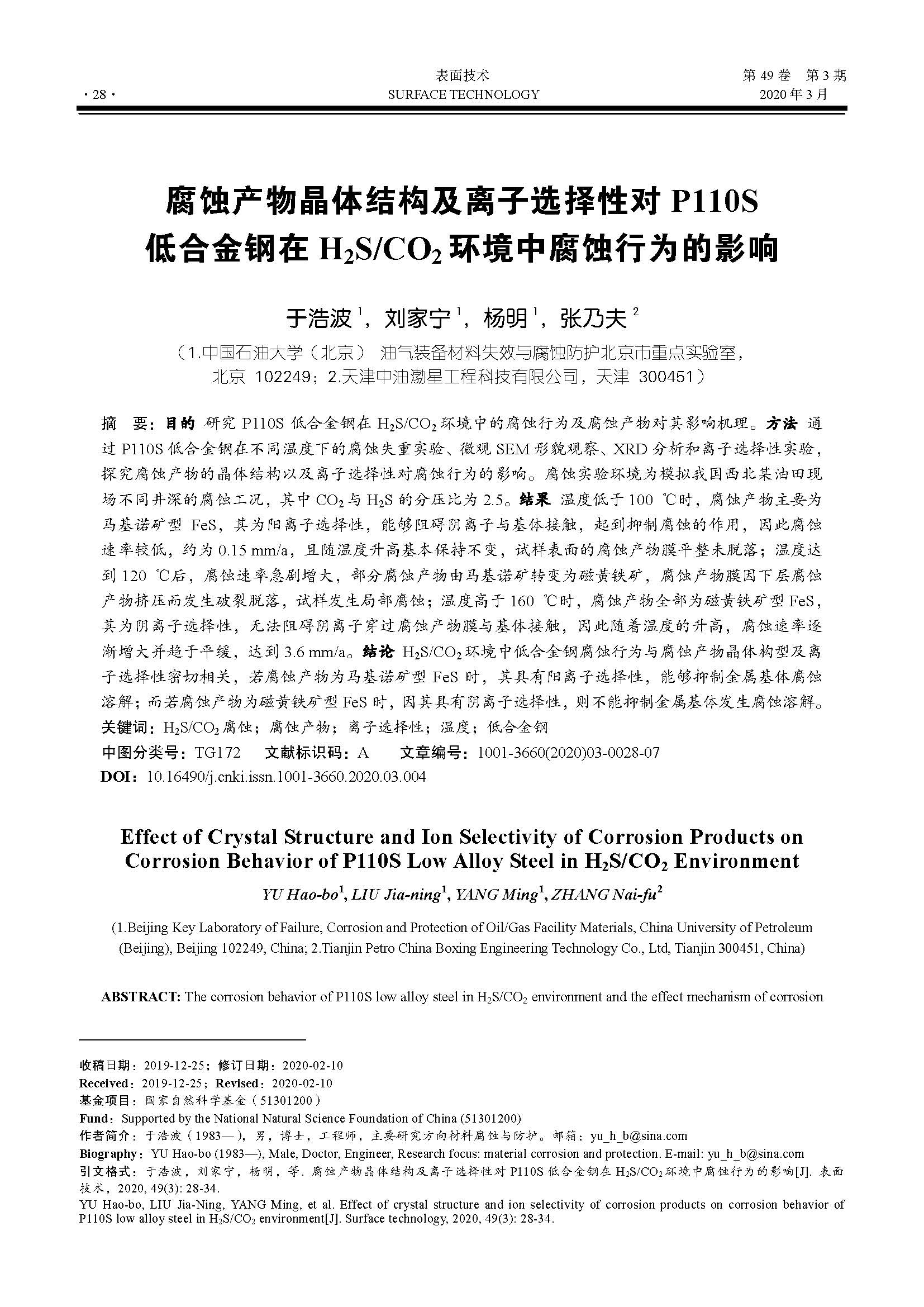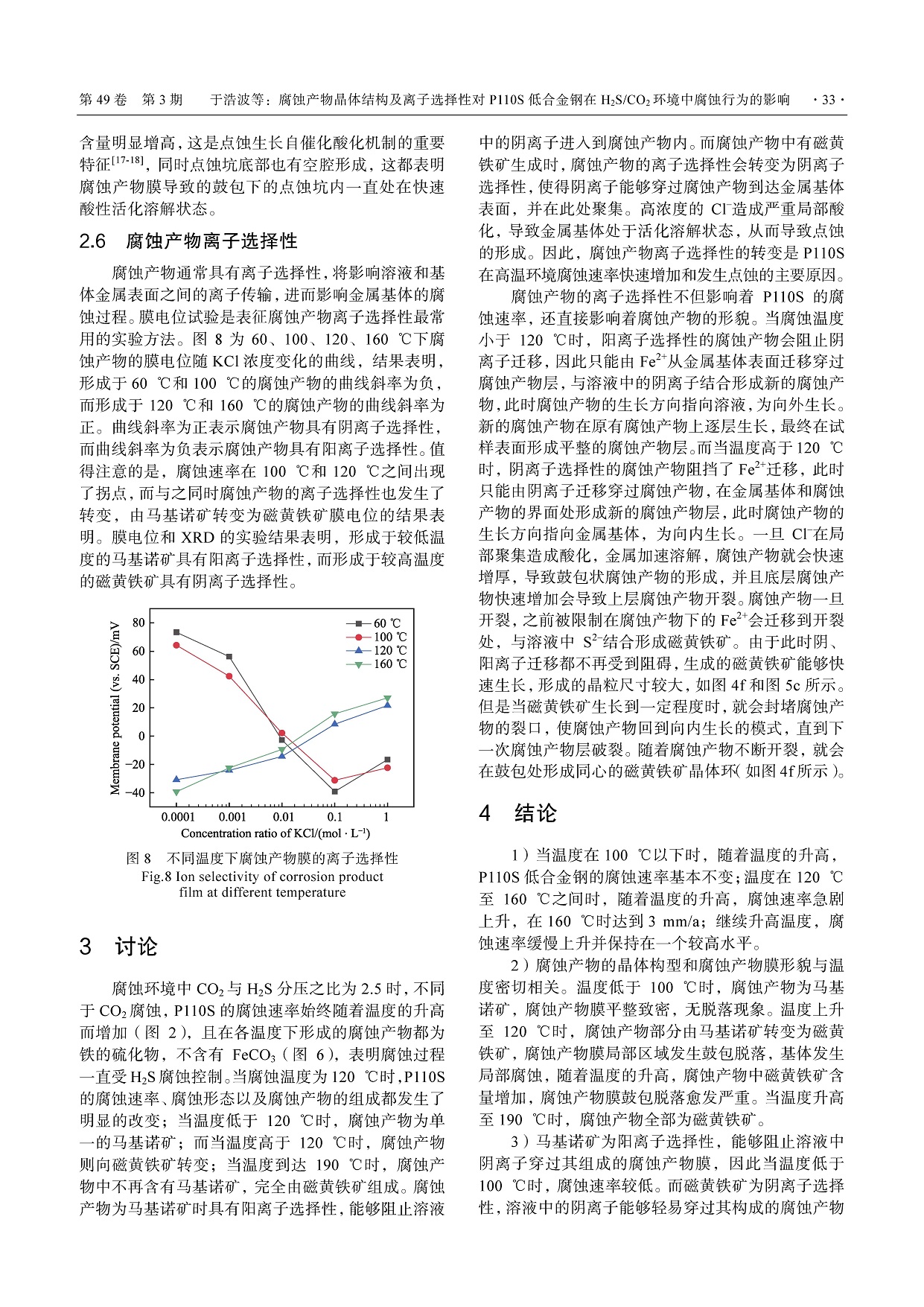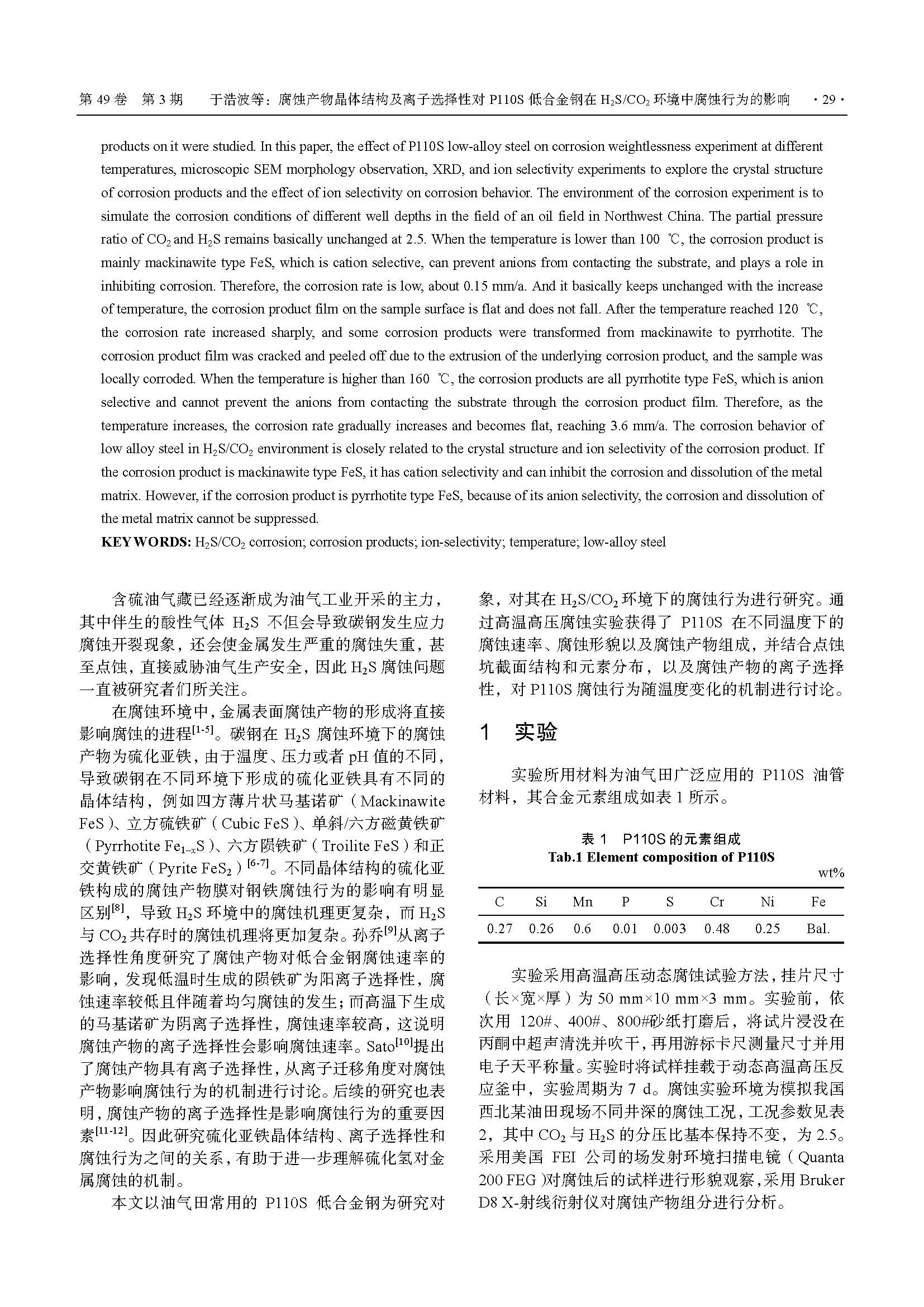 标签: H2S/CO2 腐蚀, 腐蚀产物, 离子选择性, 温度, 低合金钢