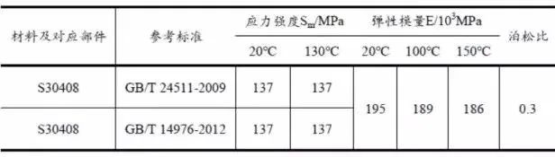 结合工艺物料及温度、压力,选材S30408,材料特性参数见下表: