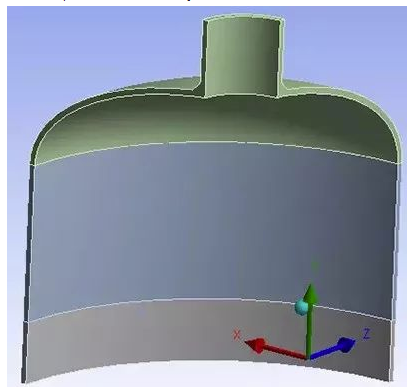 以下重点分析封头与接管连接的局部区域,并根据容器的特点对结构简化,取1/4模型(忽略法兰的),用于有限元分析的模型见图4,网格划分结果见图5。本模型主要采用六面体主导网格划分方法。单元类型是Solid186和Solid187单元。其中节点数395267,单元数为83551。