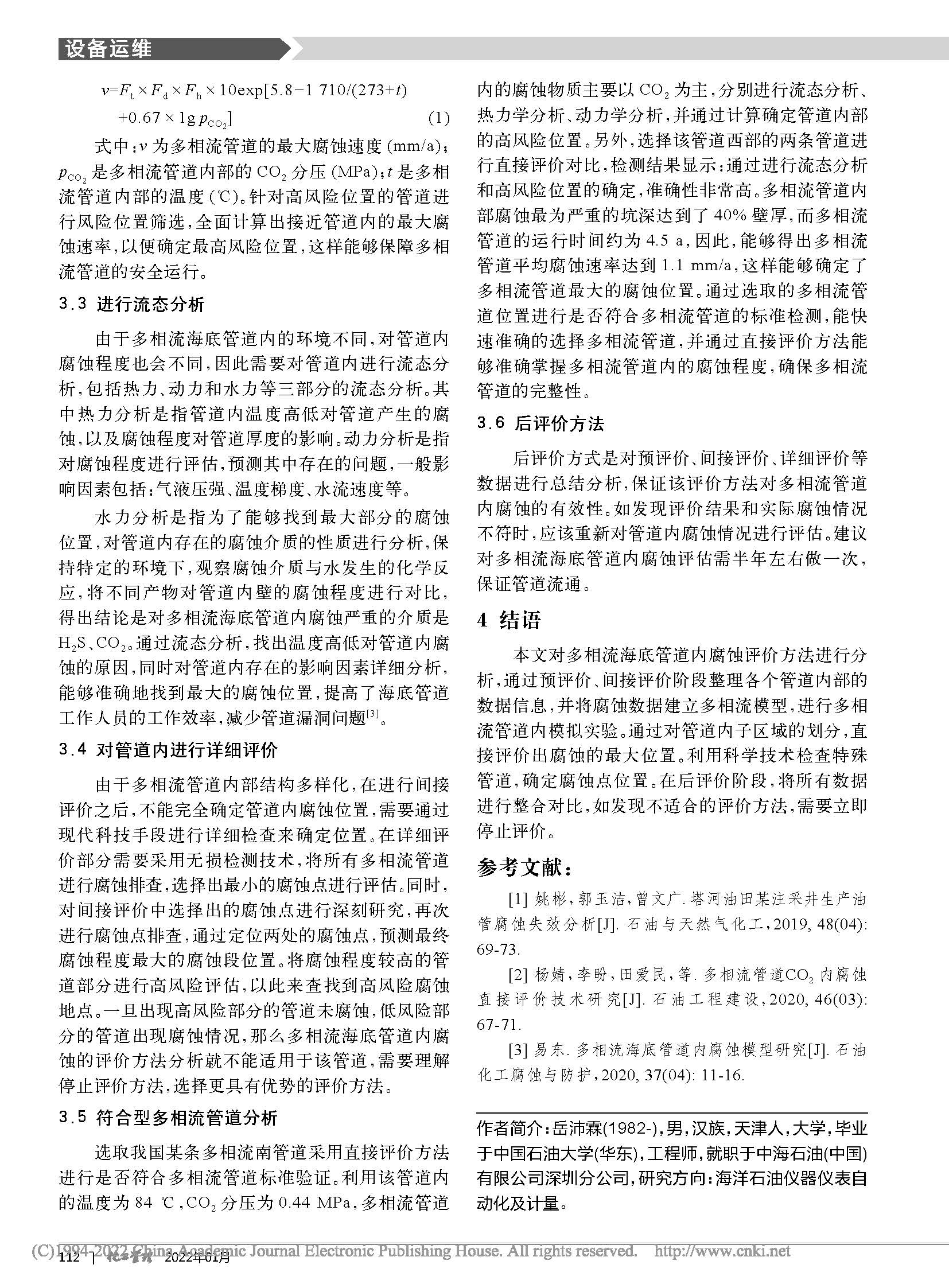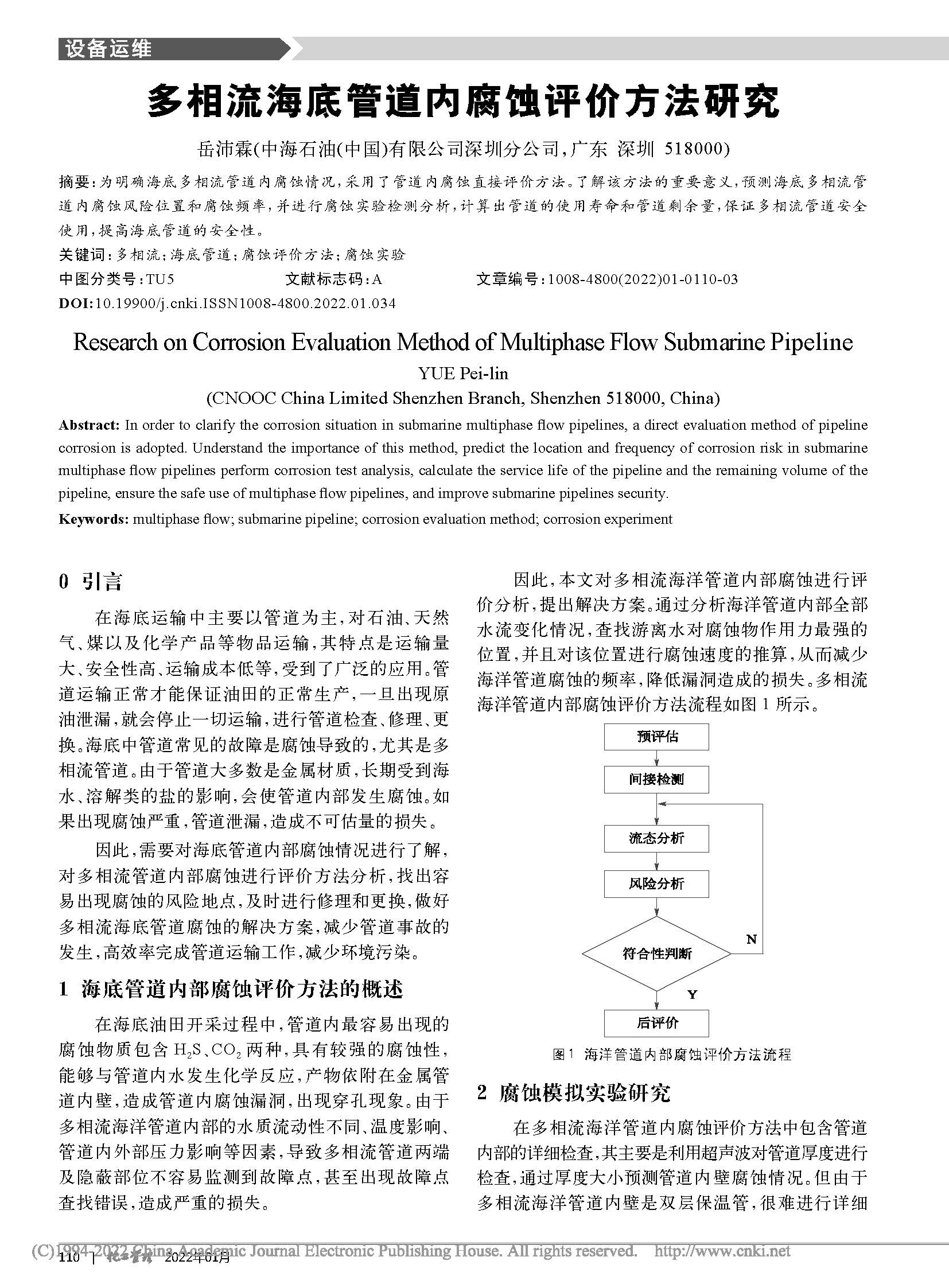 多相流海底管道内腐蚀评价方法研究