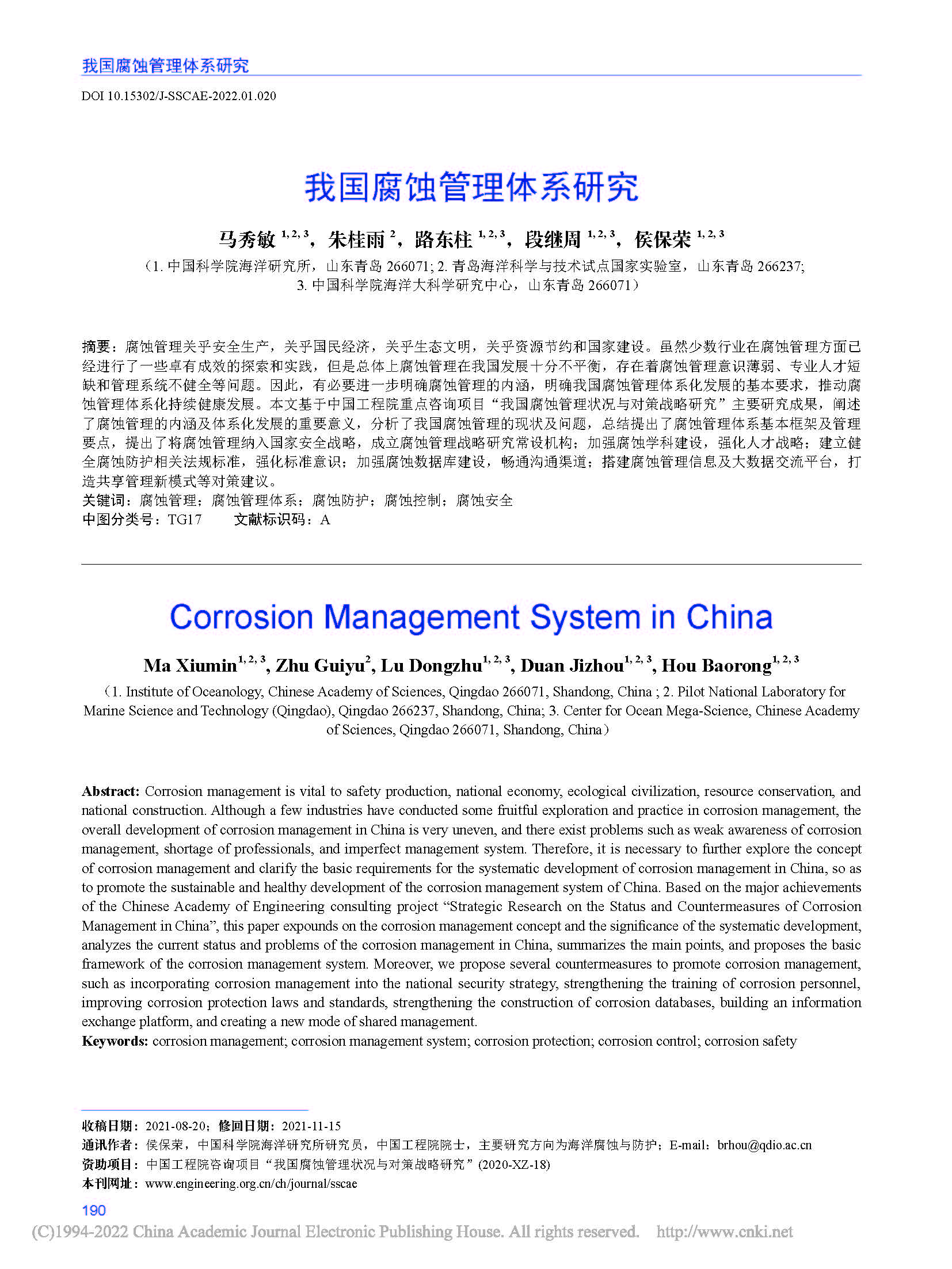 我国腐蚀管理体系研究