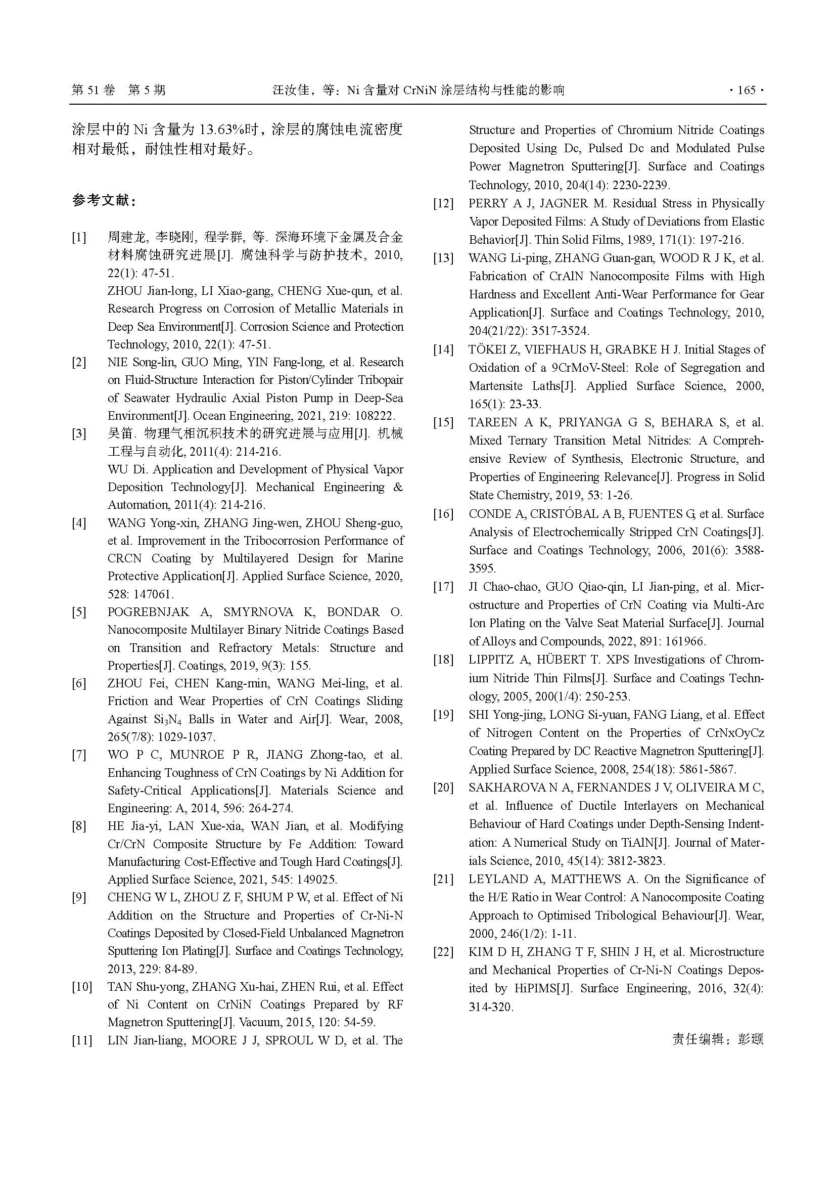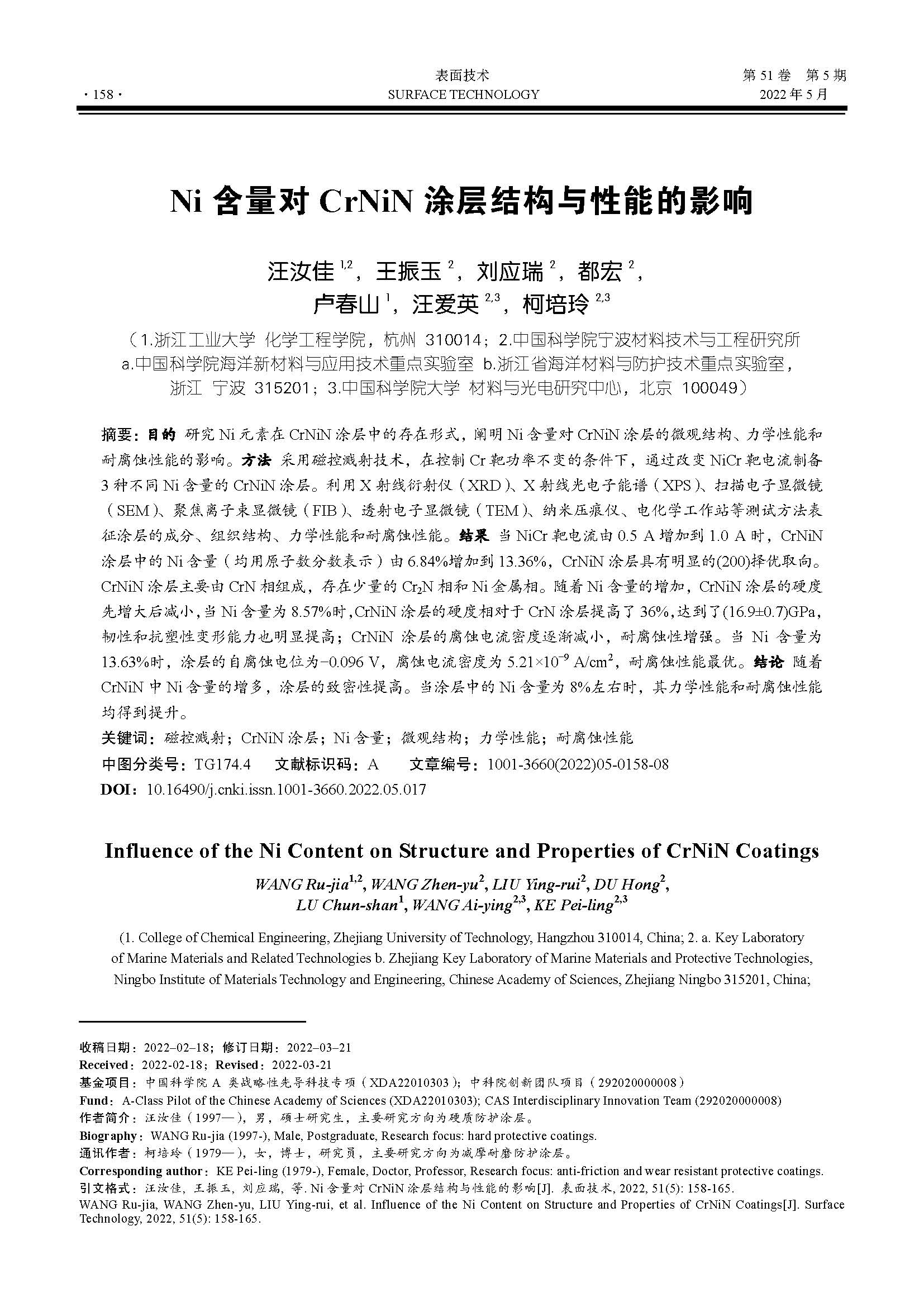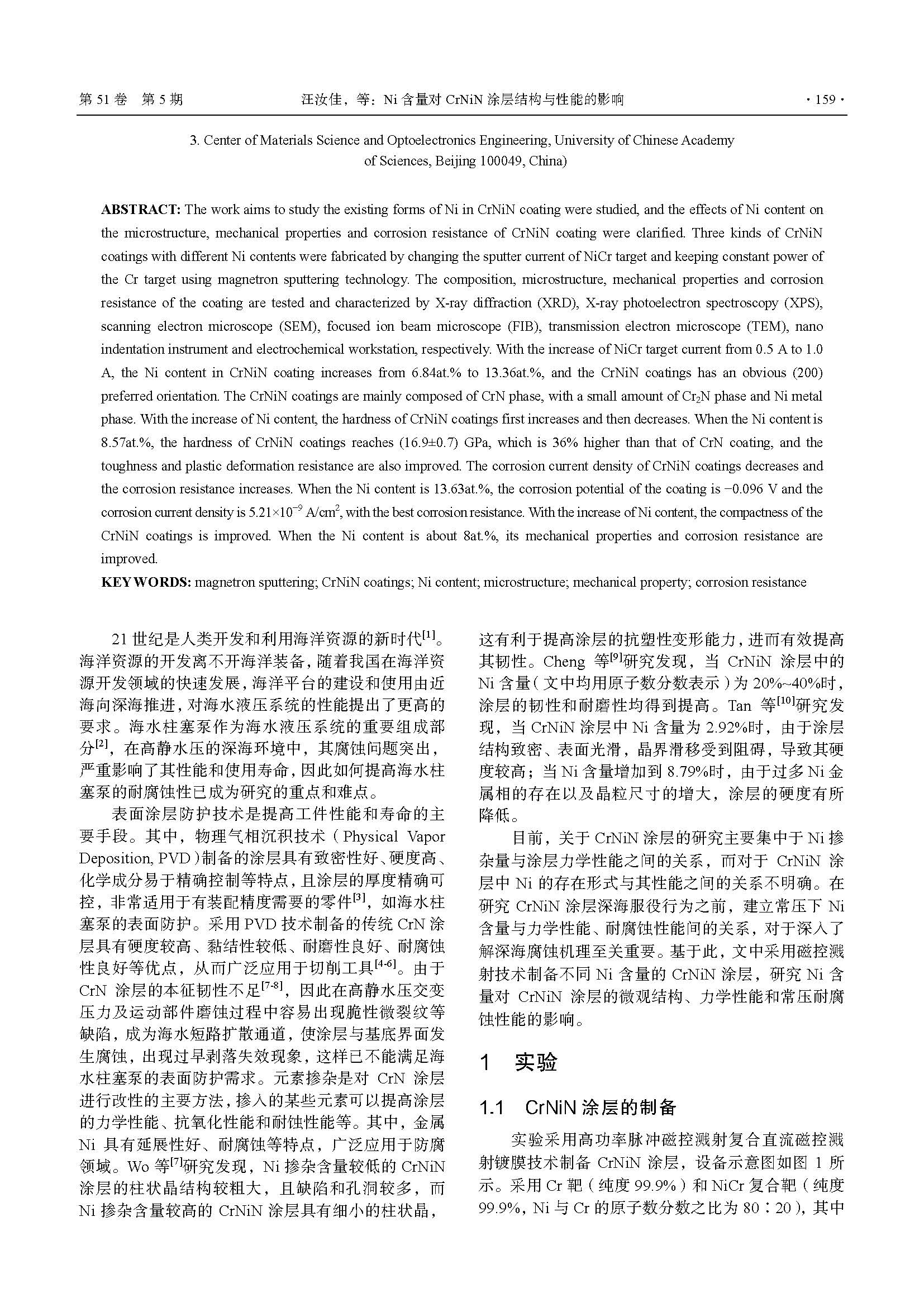 Ni含量对CrNiN涂层结构与性能的影响