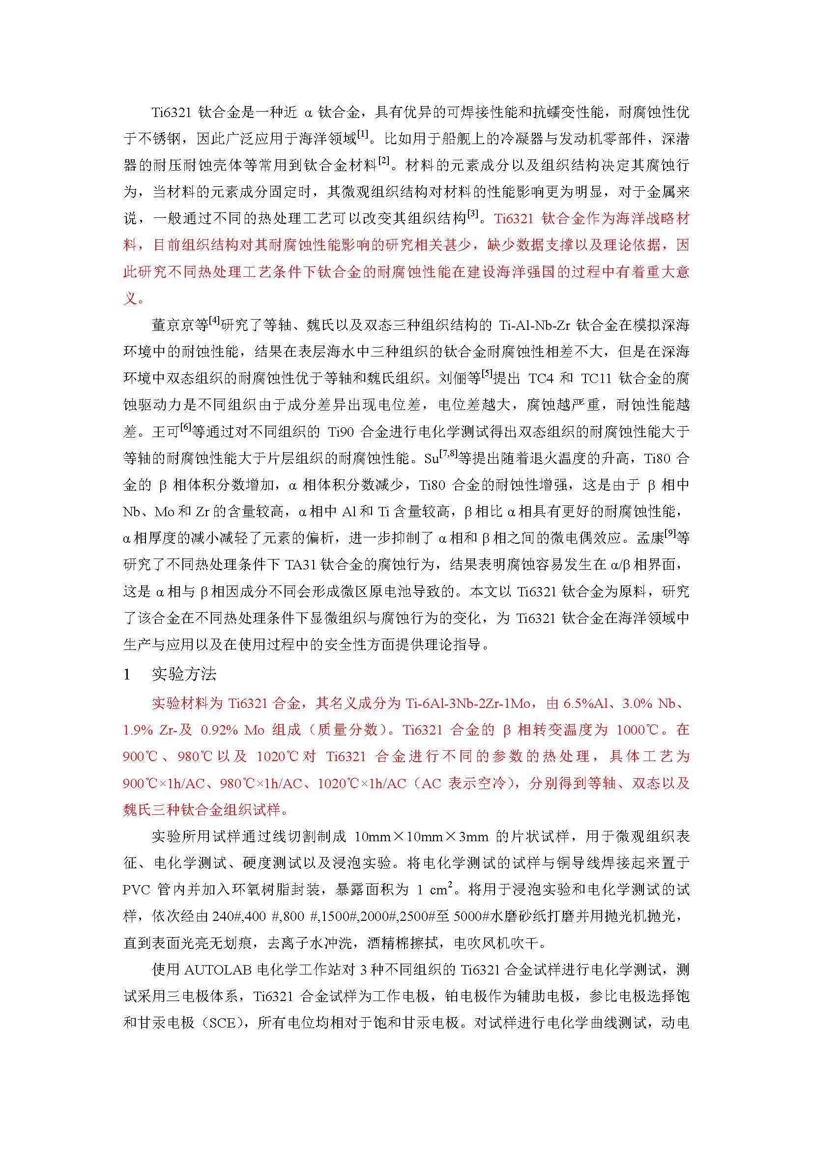 热处理工艺对Ti6321合金腐蚀行为的影响研究