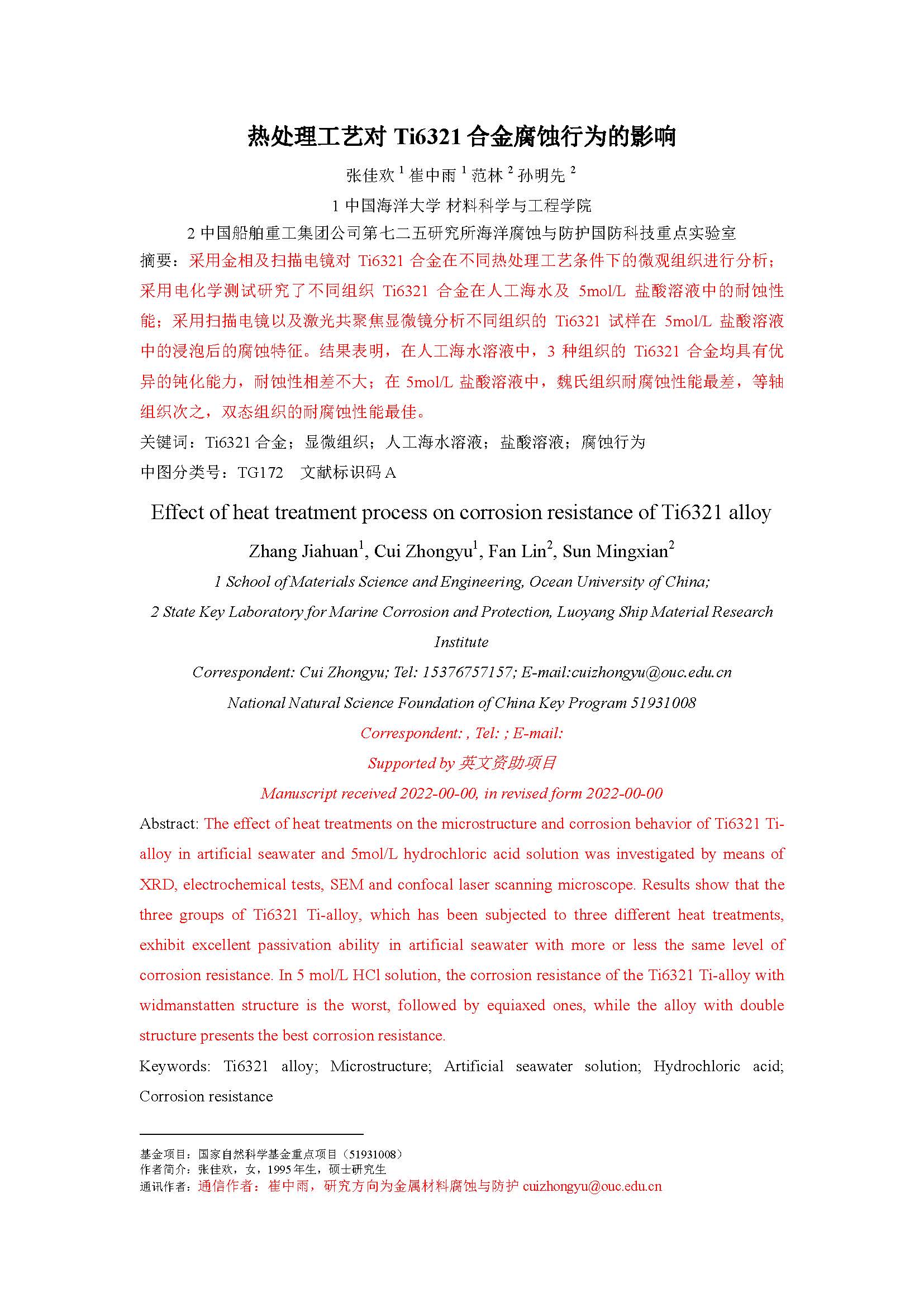 来源:1 中国海洋大学 材料科学与工程学院 2 中国船舶重工集团公司第七二五研究所海洋腐蚀与防护国防科技重点实验室